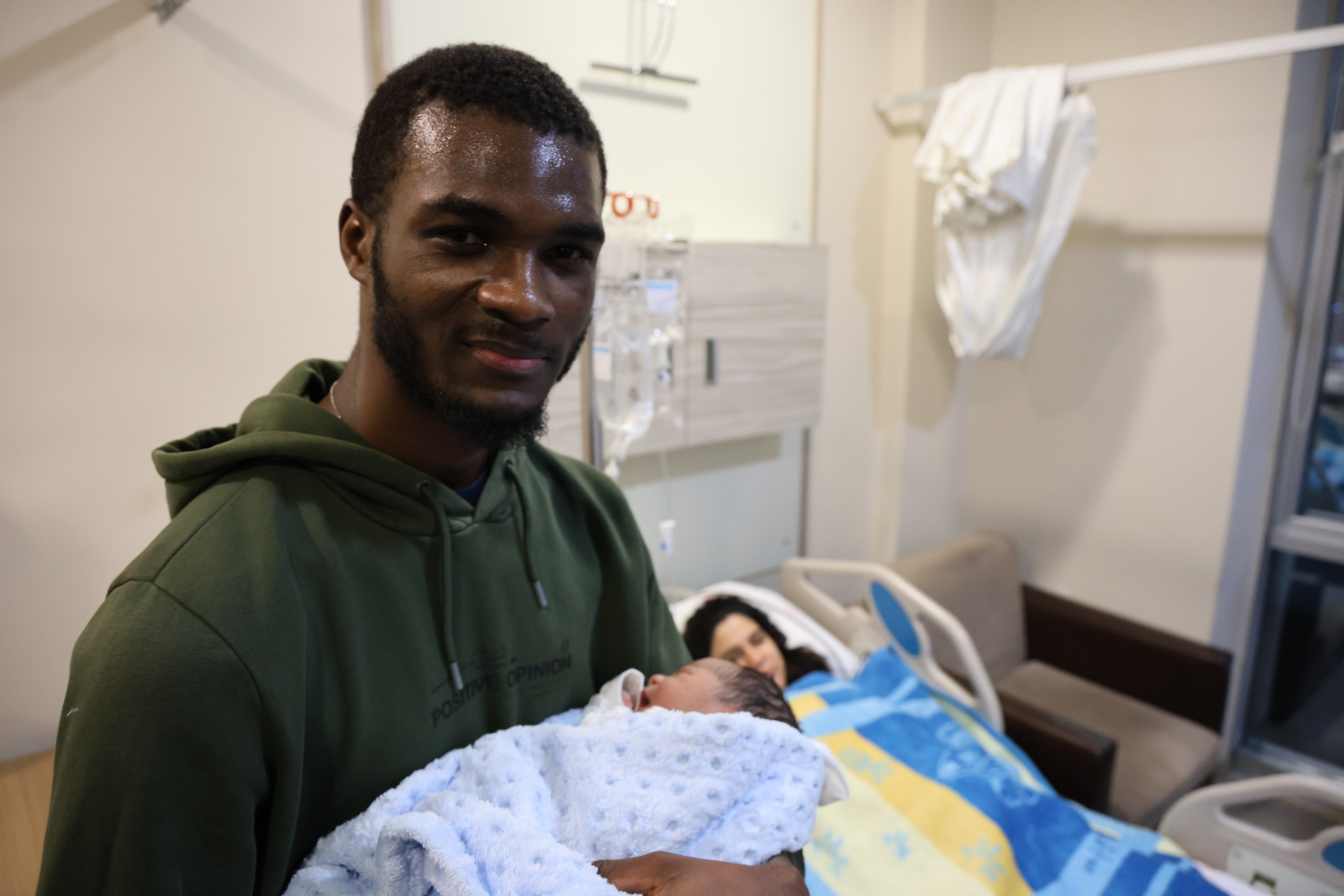 Üniversite eğitimi için Sivas"a gelen Haitili Djeby Cajuste, yeni yılın ilk dakikasında baba olmanın mutluluğunu yaşadı.