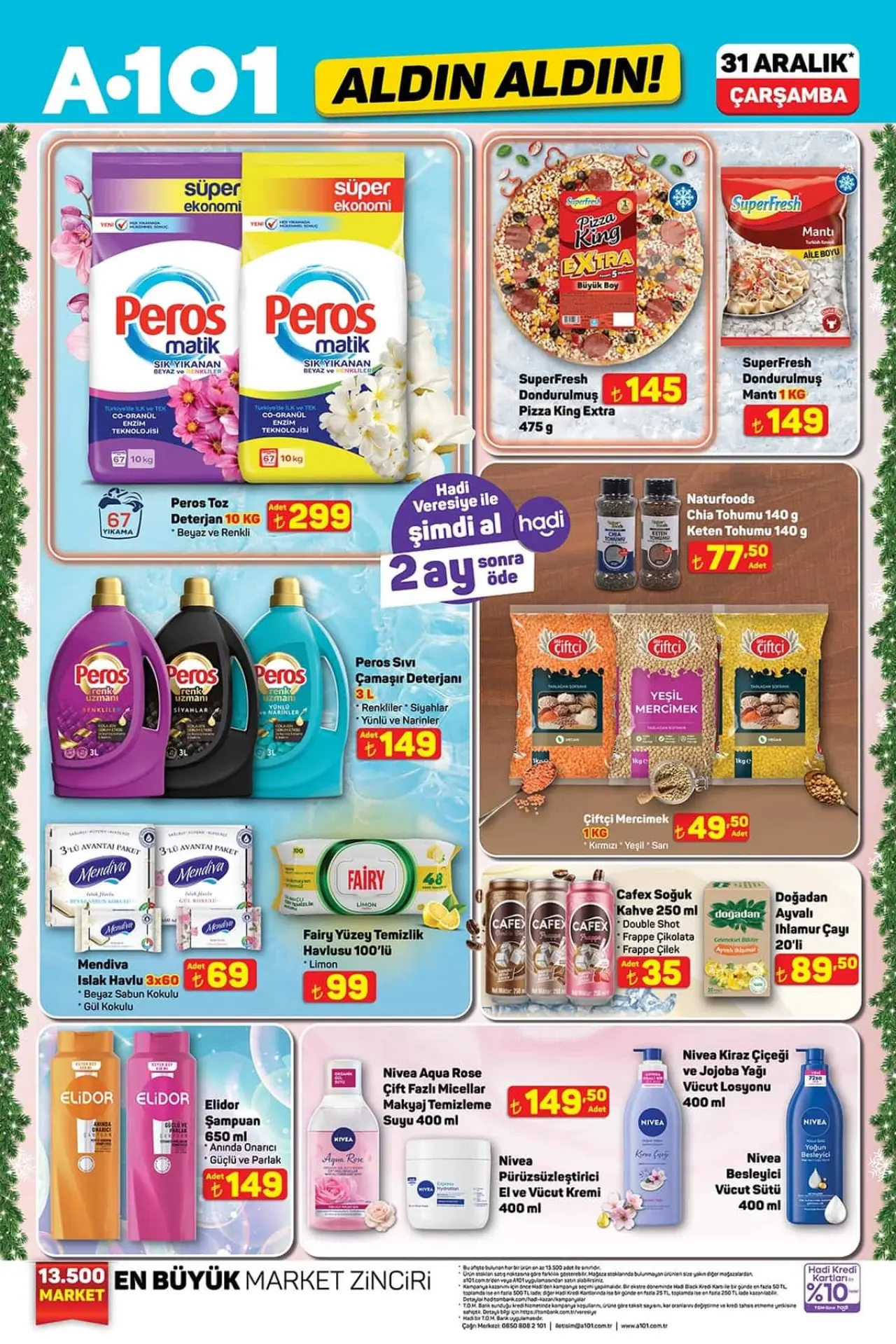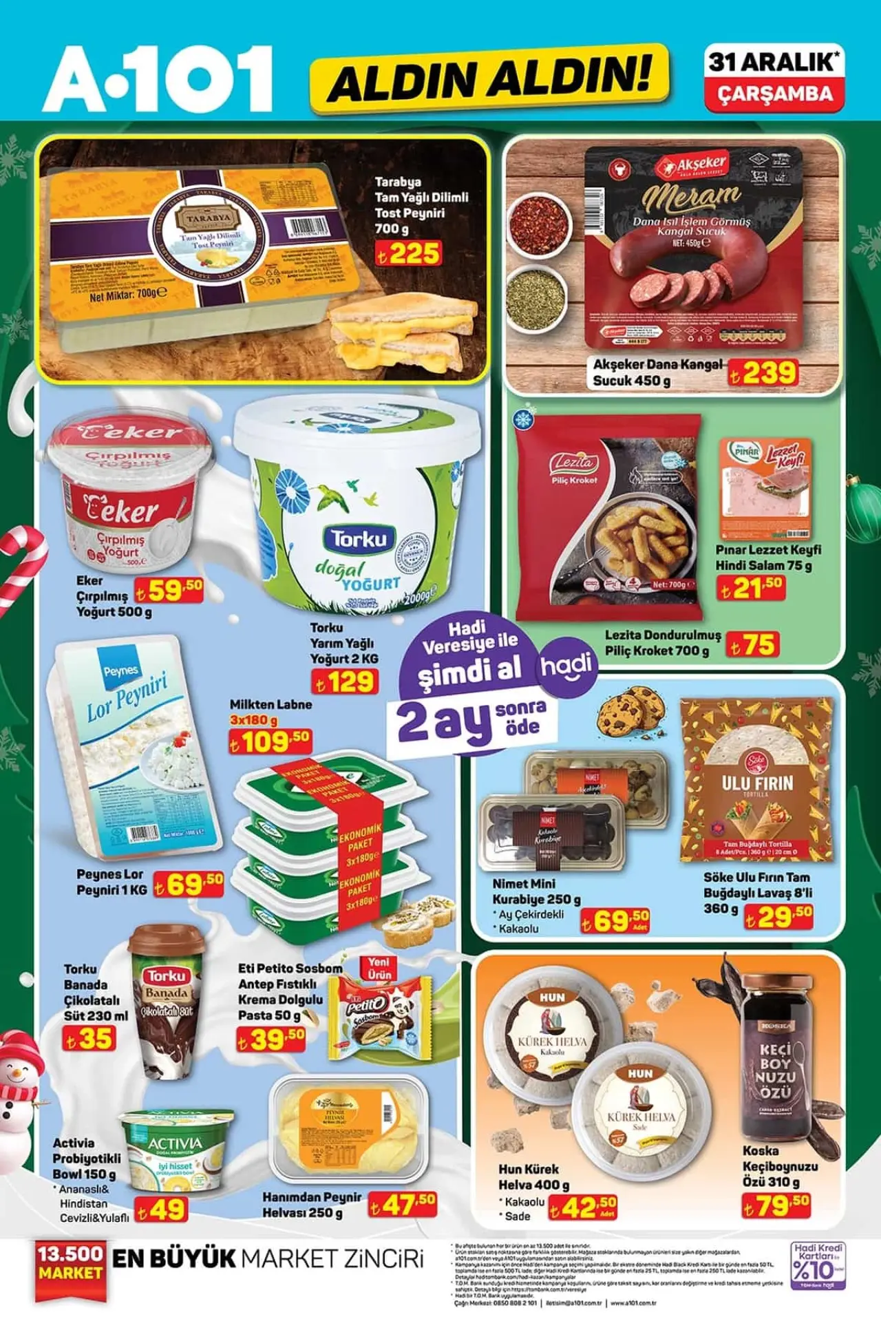 Sivas’taki A101 marketlerde yeni yılın ilk A101 Aktüel Kataloğu yayınlandı. 1 Ocak 2026 Perşembe itibarıyla başlayacak A101 Aldın Aldın fırsatlarında teknoloji, beyaz eşya, elektrikli ev aletleri ve ev & mutfak ürünleri öne çıkıyor. Ürünler A101 şubeleri dışında A101 Online ve A101 Kapıda seçenekleriyle de satışa sunulacak.