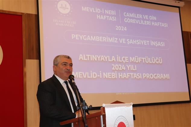 Altınyayla Halk Eğitim Merkezi Sefer Akbulut Konferans Salonunda düzenlenen program Kur'an-ı Kerim tilaveti ile başladı. Konferans öncesi selamla konuşması yapan İl Müftüsü Ahmet Celalettin Altunkaya, Mevlid-i Nebi Haftasının toplum nezdinde ki öneminden bahsederek sözlerine şöyle devam etti; "Başkanlığımız bu yıl Mevlid-i Nebi Haftası ile Camiler ve Din Görevlileri Haftasını birlikte kutlama kararı aldı. Bu yılki temamız ise 'Peygamberimiz ve Şahsiyet İnşası", bu tema çerçevesinde toplulumuzda farkındalık oluşturma anlamında konferans ve söyleşiler düzenliyoruz. Bu vesilesiyle Efendimizin sünneti seniyyeleri çerçevesinde şahsiyetli Müslümanın özelliklerini tekrar hatırlamamız gerekiyor.”dedi.