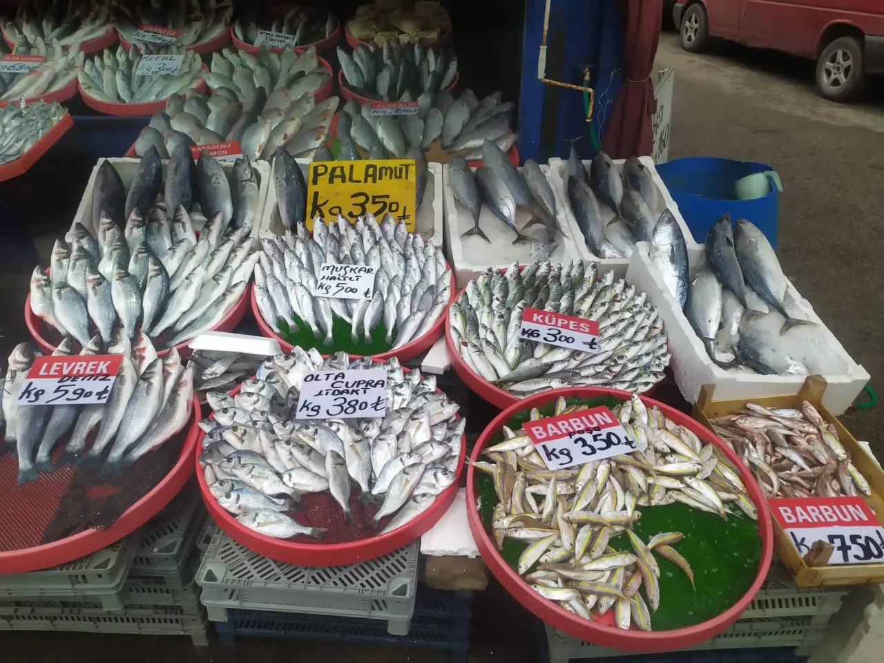 Kentte güncel kilogram fiyatları şu şekilde sıralanıyor: Palamut 350 TL, levrek 590 TL, çupra 380 TL, barbun 350 TL, alabalık 350 TL, kefal 300 TL, uskumru 200 TL, istavrit 150 TL, hamsi ve sardalya ise 150 TL’den satışa sunuluyor. Fiyatlar, balığın türüne ve tazeliğine göre tezgâhtan tezgâha küçük değişiklikler gösterebiliyor.