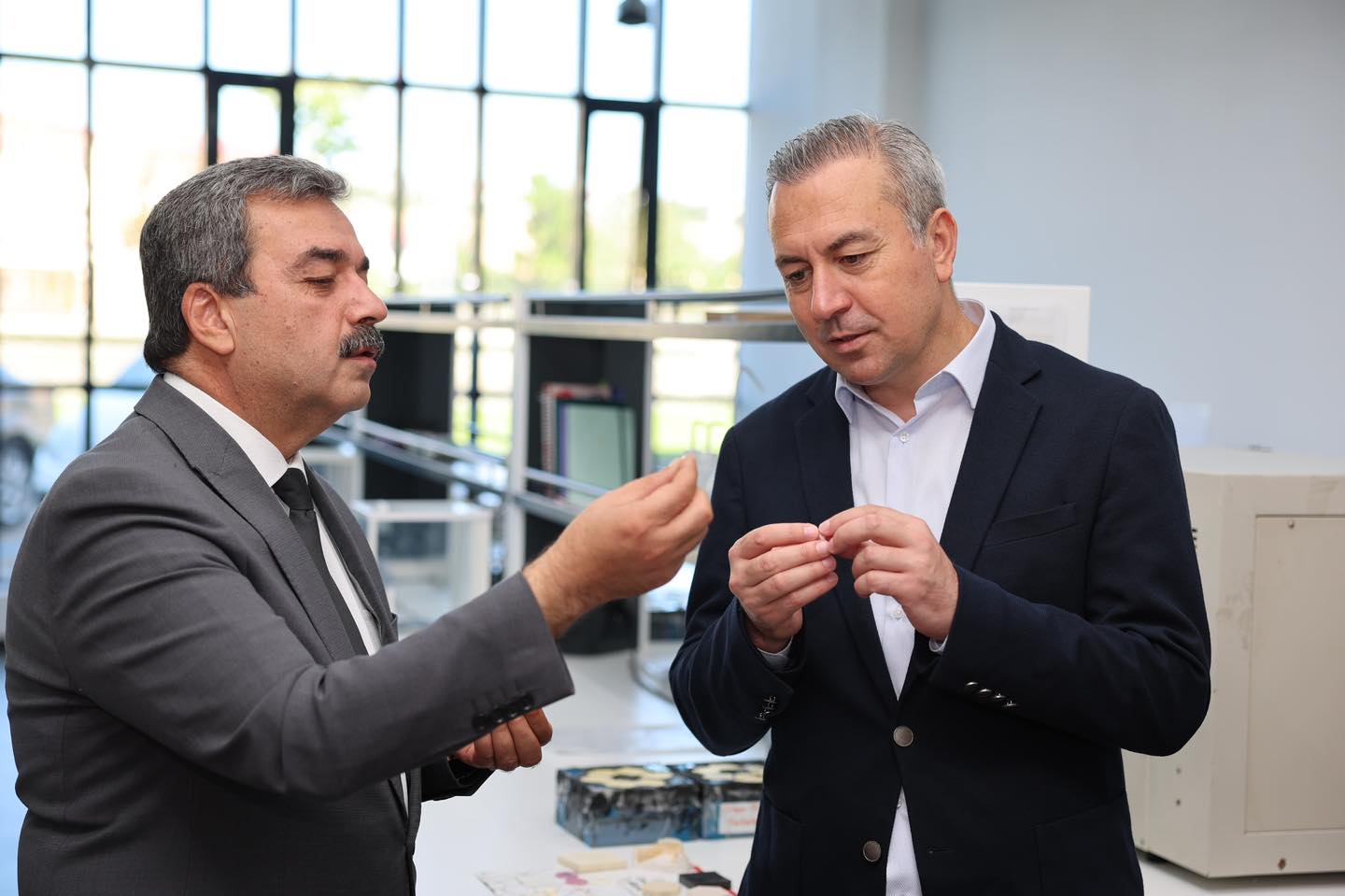 Sivas Bilim ve Teknoloji Üniversitesi Rektörü Prof. Dr. Mehmet Kul"un eşlik ettiği ziyarette Sivas Bilim ve Teknoloji Üniversitesinin (SBTÜ) modern altyapısı ve teknolojisiyle dikkatleri üzerine çeken laboratuvarlarını inceleyen Belediye Başkanı Adem Uzun, uzman akademisyenlerimiz tarafından yürütülen bilimsel çalışmalar ve faaliyetler hakkında bilgilendirildi.