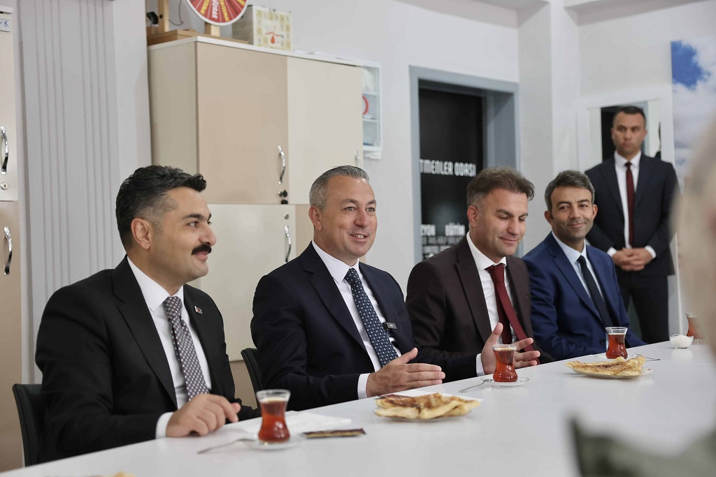İdarecilerden okulun durumu hakkında bilgi alan Başkan Uzun ve Erdoğan, okulda görev yapan öğretmenler ile bir araya gelerek bir süre sohbet etti.
