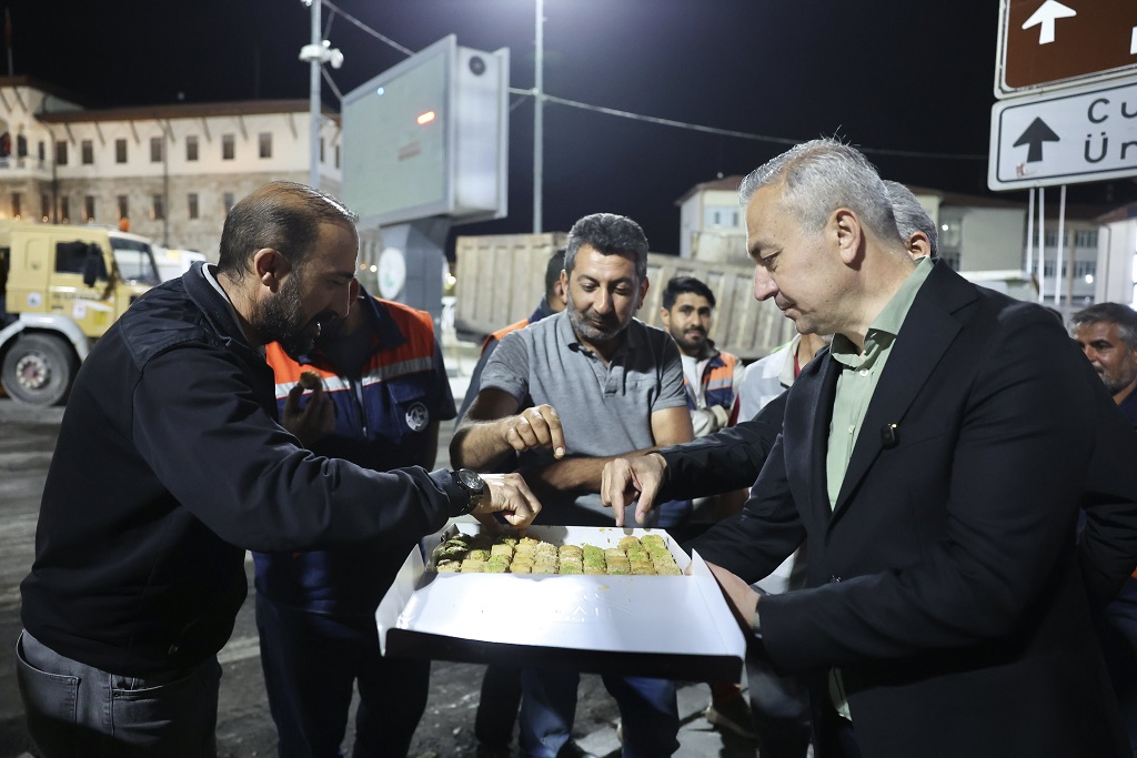 Gece boyunca süren çalışmaları yerinde inceleyen Sivas Belediye Başkanı Adem Uzun, hem ekiplerden bilgi aldı hem de çalışanlara tatlı ikramında bulundu. Başkan Uzun, yaptığı açıklamada şunları söyledi: