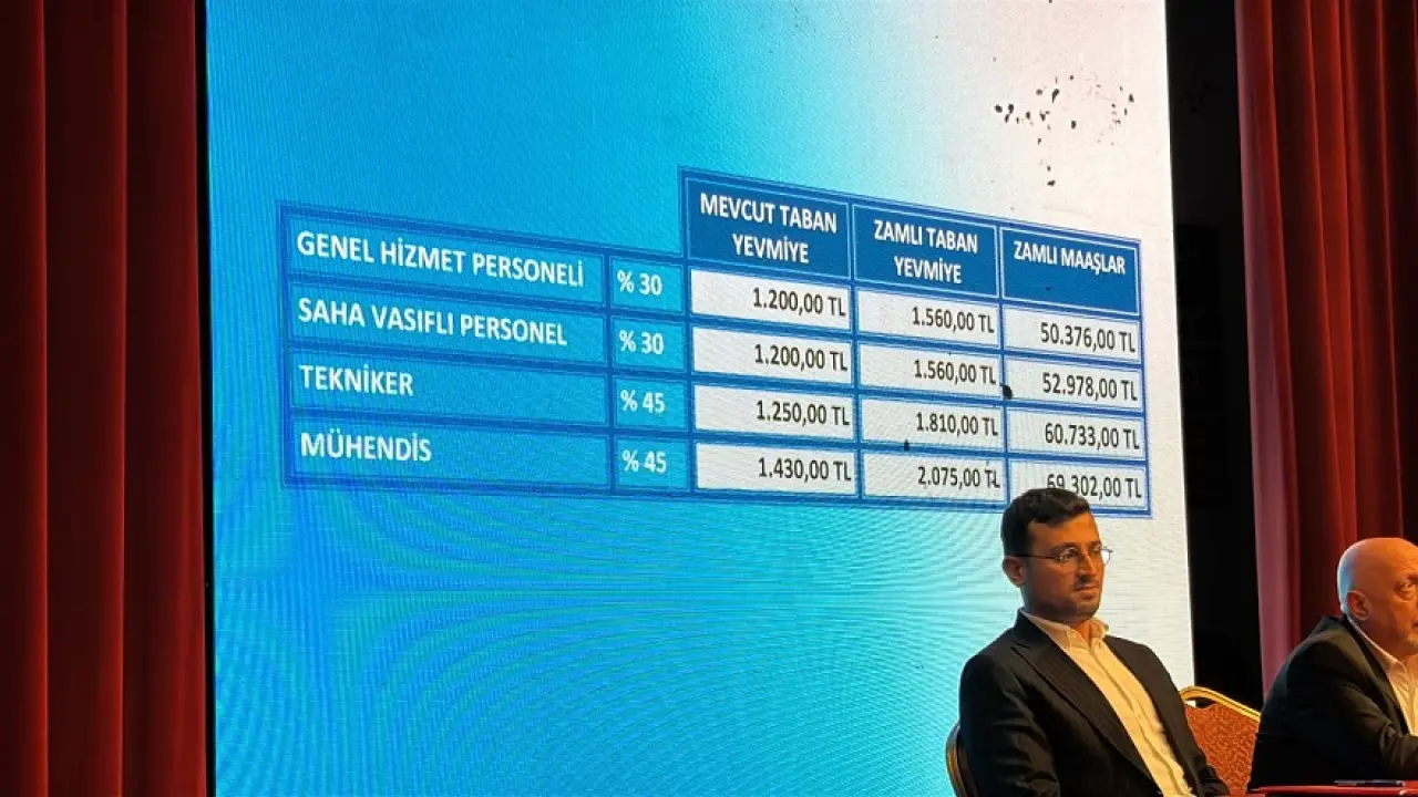 Yapılan açıklamaya göre, işçilere yüzde 30 ile yüzde 45 arasında değişen oranlarda zam yapıldı. Buna göre; genel hizmet personeli 50 bin 376 TL, saha vasıflı personel 52 bin 978 TL, teknikerler 60 bin 733 TL, mühendisler ise 69 bin 302 TL maaş alacak. Konuşmaların ardından Sivas Belediye Başkanı Adem Uzun ile Hak-İş Genel Başkanı Mahmut Arslan, Toplu İş Sözleşmesini imzalayarak süreci resmen tamamladı. Program, işçiler tarafından alkışlarla sona erdi.