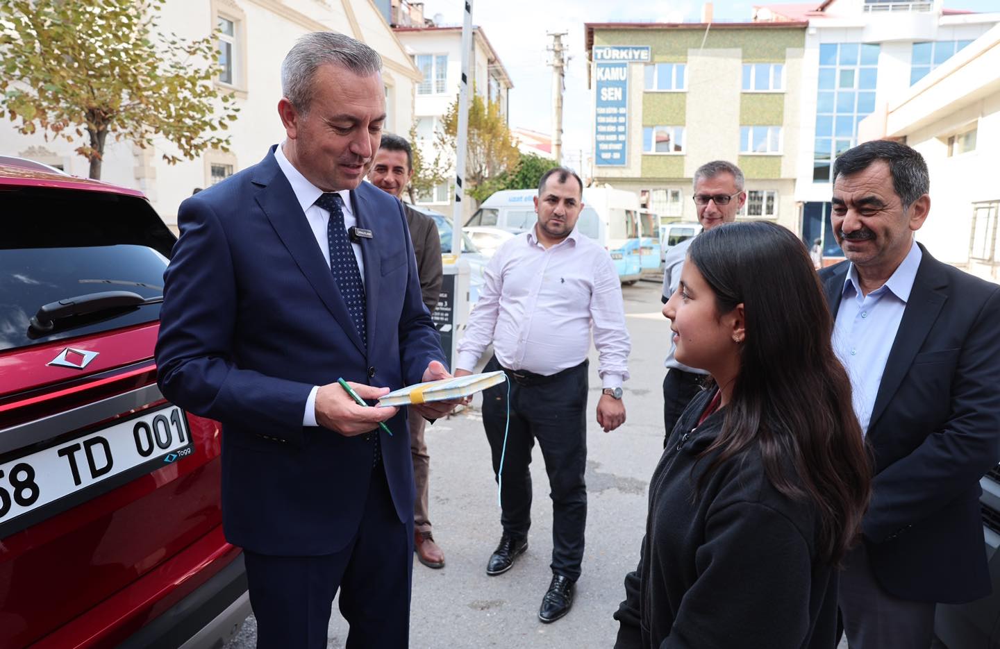 Ziyaret esnasında Aysima isimli bir öğrenciyle de sohbet eden Başkan Uzun, Aysima'nın istediği üzerine hatıra defterini imzaladı.