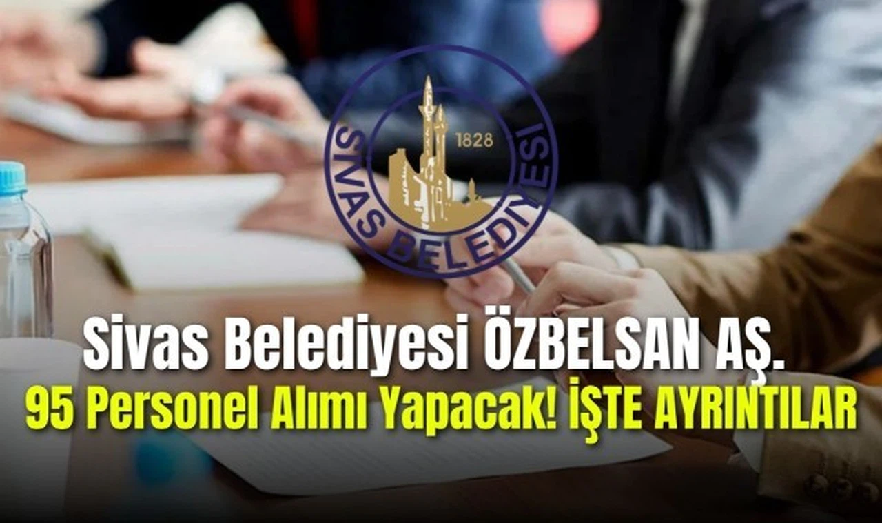 Sivas Belediyesi"nin iştirak şirketi ÖZBELSAN AŞ., belediyenin çeşitli hizmet alanlarında görevlendirilmek üzere personel alımı yapacağını duyurdu. Toplamda 95 kişilik kontenjanla farklı pozisyonlarda görevlendirme yapılacak. İşte ilan edilen kadrolar ve alım yapılacak kişi sayıları: