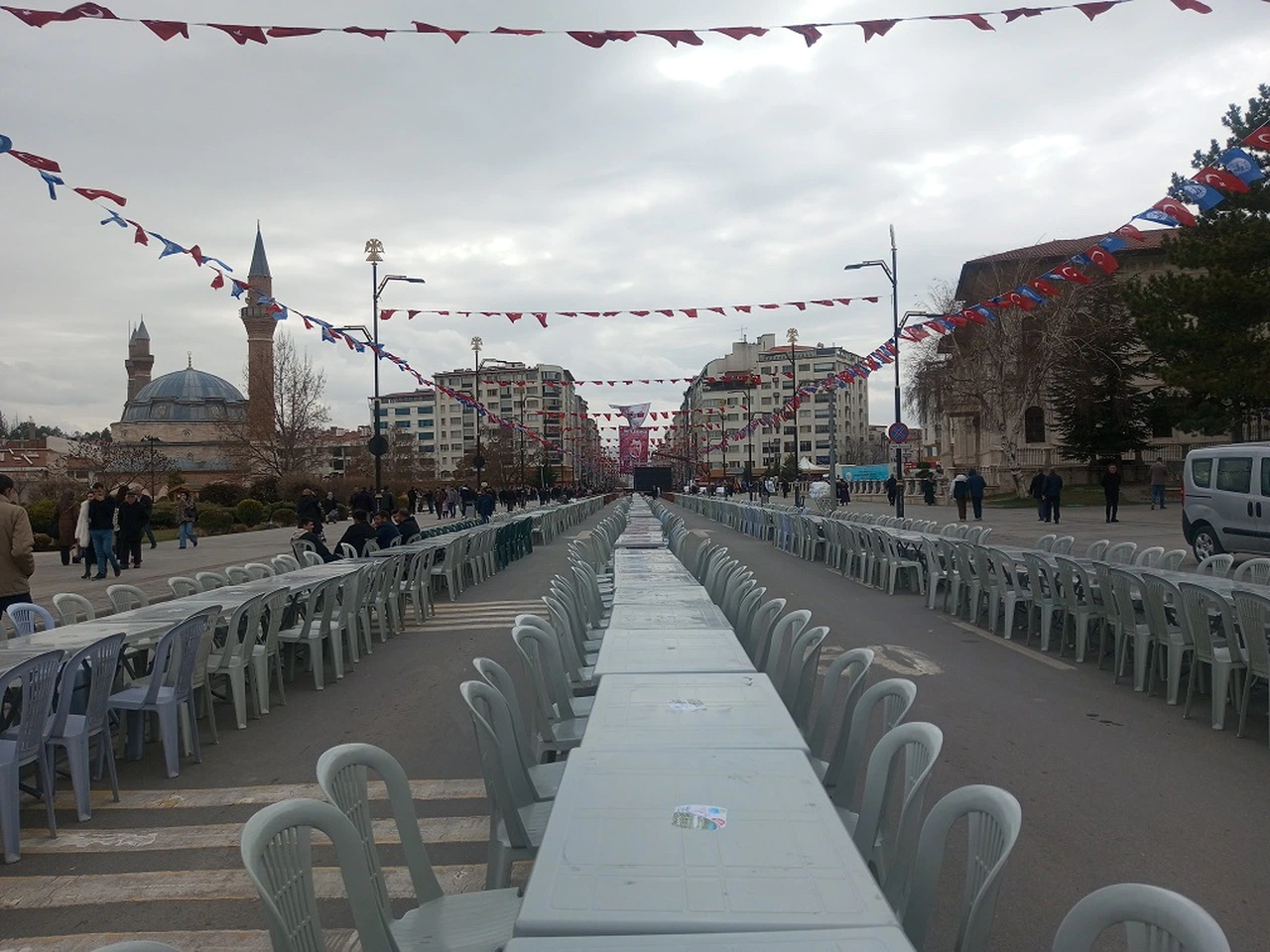 Bugün itibarıyla, iftar alanı hazırlıkları kapsamında İstasyon Caddesi'nde trafik kontrollü olarak kapatıldı. Hazırlanan 10 bin kişilik iftar alanında, şehitlerimiz ve milletimizin birliğini simgeleyen özel etkinliklerin yer alacağı belirtiliyor.