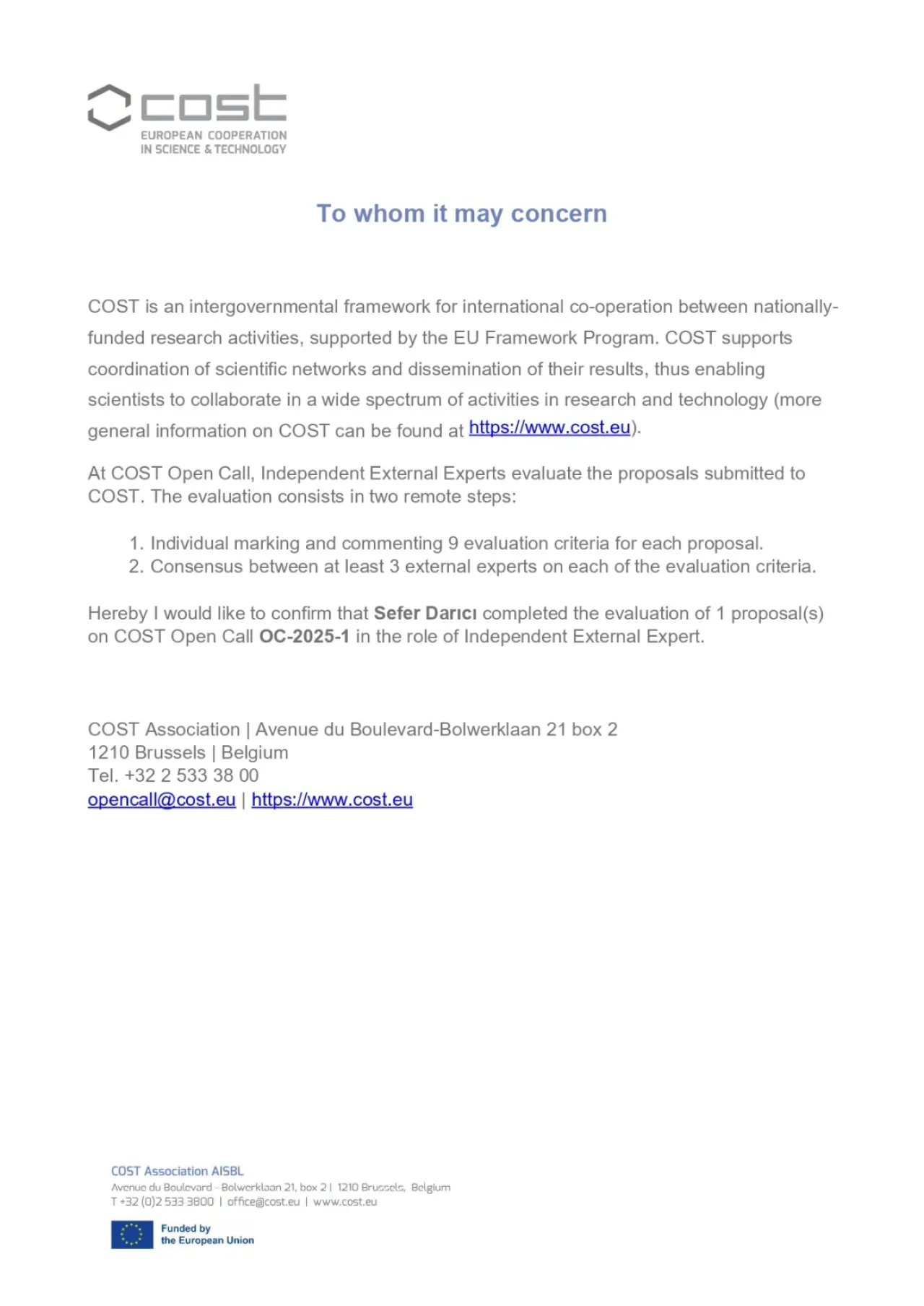 “Akademisyenimiz Doç. Dr. Sefer Darıcı, AB destekli COST Programı kapsamında Bağımsız Dış Uzman olarak görevlendirildi. Akademisyenimizi tebrik ediyoruz.”