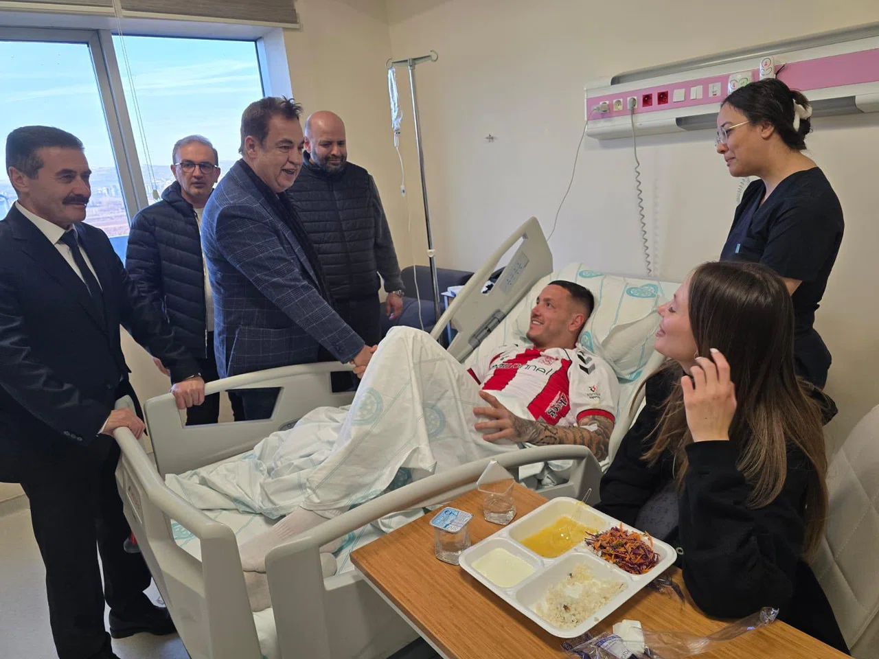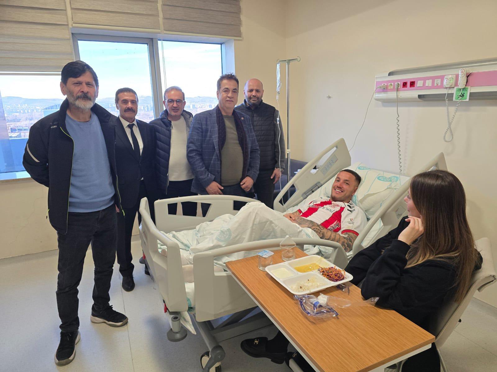 Sivasspor ile Göztepe arasında oynanan Süper Lig maçında sakatlanan ve Sivas Cumhuriyet Üniversitesi Hastanesi'nde tedavi altına alınan Sivassporlu futbolcu Rej Manay'a, Rektör Prof. Dr. Ahmet Şengönül geçmiş olsun ziyaretinde bulundu.