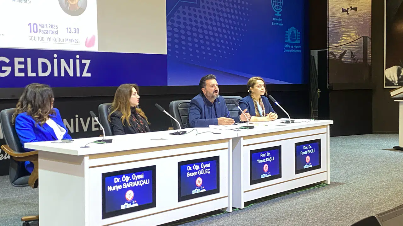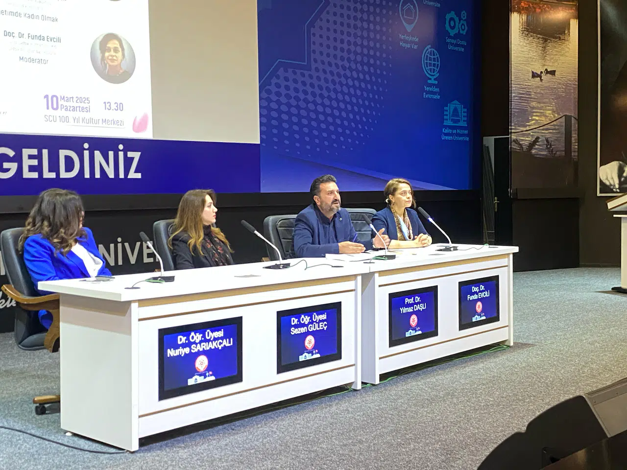 8 Mart Dünya Kadınlar Günü kapsamında düzenlenen etkinlikte, kadınların toplumsal hayattaki yeri, yönetimdeki rolleri ve psikolojik dayanıklılığı ele alındı. Panelde, SCÜ Sağlık Bilimleri Fakültesi Sağlık Yönetimi Bölümü’nden Prof. Dr. Yılmaz Daşlı, "Dünden Bugüne Türk Toplumunda Kadın" başlıklı sunumuyla tarihsel süreçte kadınların toplumdaki konumunu değerlendirdi.