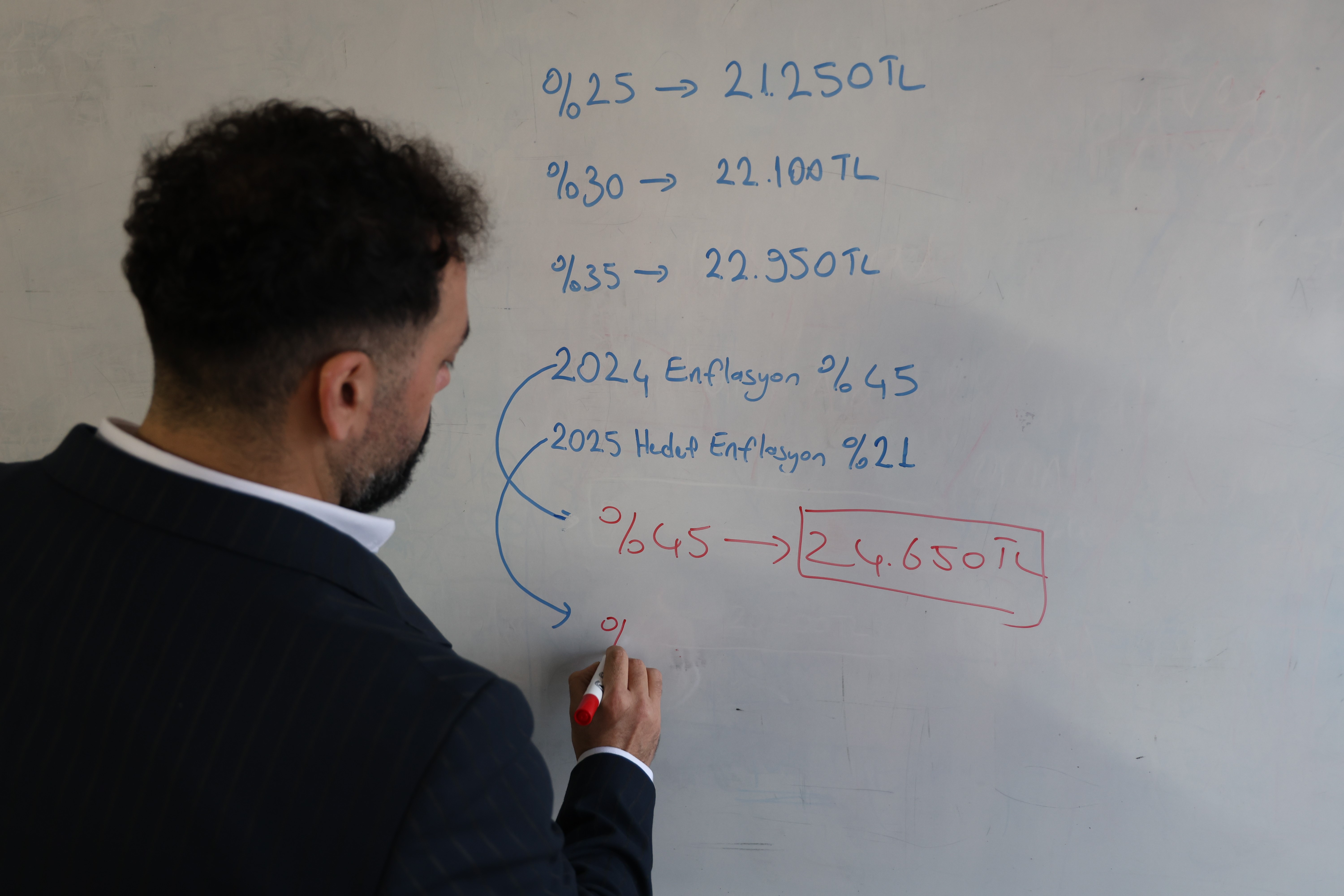 “İşverenler maliyetlerini hesaplamak için işçiler ise alacağı ücreti öğrenmek için Asgari Ücret Tespit Komisyonu'nun belirleyeceği ücreti merakla bekler. Geçen yıl asgari ücret 17 bin 2 TL olarak belirlenmişti. Bu yıl asgari ücrete yüzde 25'lik bir zam yapılırsa 21 bin 250 TL, yüzde 30'luk bir zaman yapılırsa 22 bin 100 TL, yüzde 35'lik bir zam yapılırsa 22 bin 950 TL olarak hesaplanacak. Fakat Cumhurbaşkanımız ve Maliye Bakanı Mehmet Şimşek'in son yaptığı açıklamaya bakıldığı zaman 'mevcut enflasyonun altında ezdirmeyeceğiz' ibaresi kullanılmakta. 2024 yılı enflasyonu şu an için yüzde 47 seviyesinde. Aralık ayı sonu itibarıyla yüzde 45 seviyelerine düşeceğiz. Bu noktada yüzde 45'lik bir zam yapılırsa 2025 yılı asgari ücreti 24 bin 650 TL olur. Son yorumcuların söylemine göre 2025 yılı enflasyon hedefine göre de artış yapılabileceği söyleniyor, ki ben buna çok ihtimal vermiyorum. Eğer 2025 yılında hedeflenen enflasyona göre artış yapılırsa 20 bin 600 TL civarında olacaktır denilebilir. Sayın bakanın açıklamasından önce benim kendi yorumum yüzde 30 civarında artış yapılacağını tahmin ediyordum. Fakat Bakan Şimşek'in TBMM bütçe görüşmelerindeki açıklamasıyla yüzde 45 artacağını öngörebiliyoruz.”