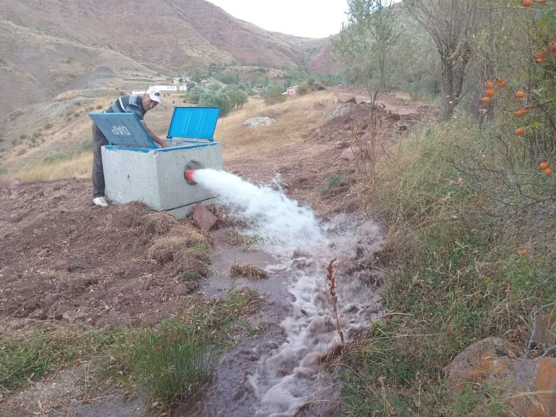 Sivas Zara İlçesi Pazarcık Köyü Sulama Tesisi Projesi alanını ziyaret edilirken, suya kavuşan çiftçiler mutluluklarını dile getirdiler.