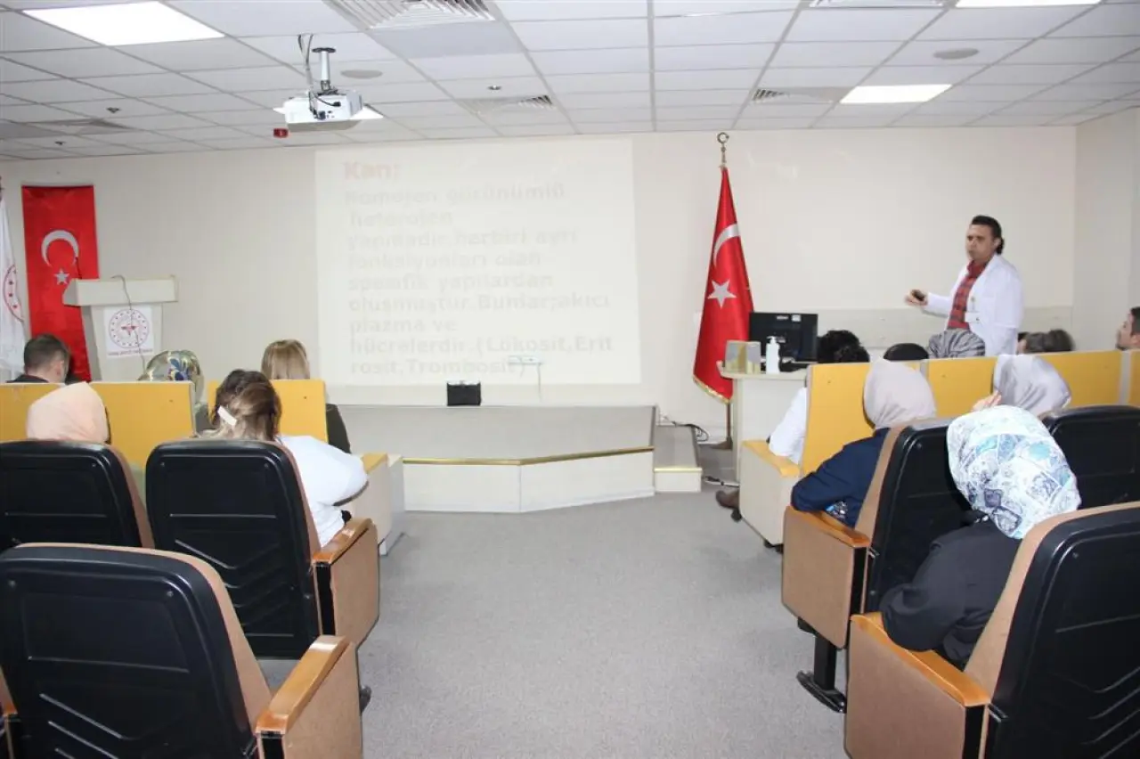Sivas Devlet Hastanesi’nde, Sağlıkta Kalite Standartları doğrultusunda hazırlanan Sağlık Bakım Hizmetleri eğitim programının ilk oturumu gerçekleştirildi. Kan ve kan bileşenlerinin yönetimi, güvenli transfüzyon süreçleri, acil durumlarda uygulanacak adımlar ve istenmeyen olaylarda yürütülecek prosedürler eğitim kapsamında kapsamlı biçimde ele alındı.