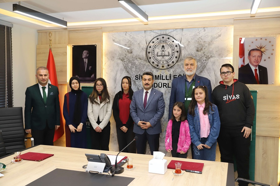 Millî Eğitim Müdürü Fatih Erdoğan ve Yeşilay Sivas Şube Başkanı Halit Köksal, müdürlüğümüz toplantı salonunda dereceye giren öğrencilerle bir araya geldi. Öğrencileri tebrik ederek başarılarının devamını dileyen Erdoğan, öğrencilerin eserleri hakkında bilgi aldı.