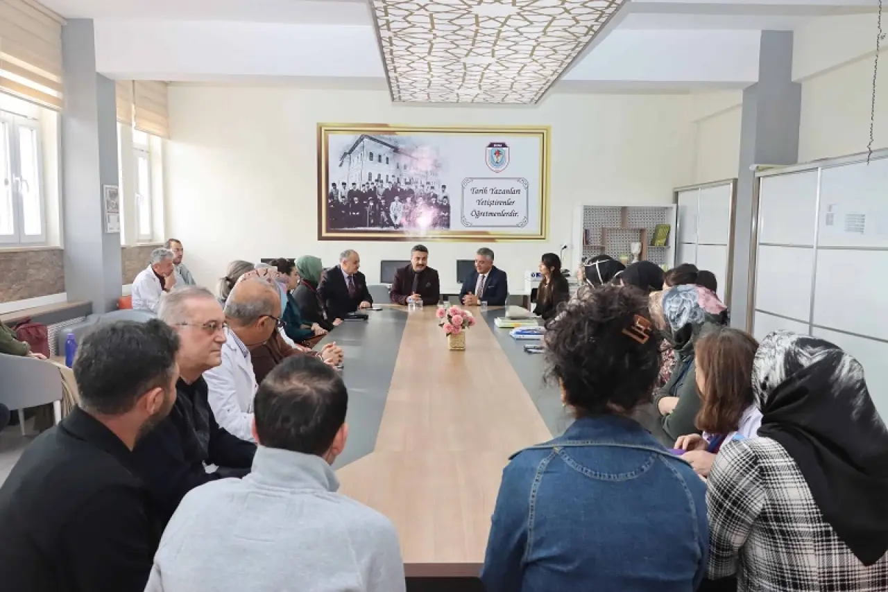 Ziyaretin ikinci bölümünde öğretmenlerle toplantı yapan Millî Eğitim Müdürü, eğitim öğretim sürecinin sahadaki etkilerini değerlendirdi. Maarif Modelinin etkin ve eksiksiz şekilde uygulanması konusunda titiz bir çalışma yürütüldüğünü vurgulayan Erdoğan, öğretmenlerin bu süreçte gösterdiği özveriye teşekkür etti. Öğretmenlerle görüş alışverişinde bulunan Erdoğan, eğitim kalitesini artırmaya yönelik fikirleri de not aldı.