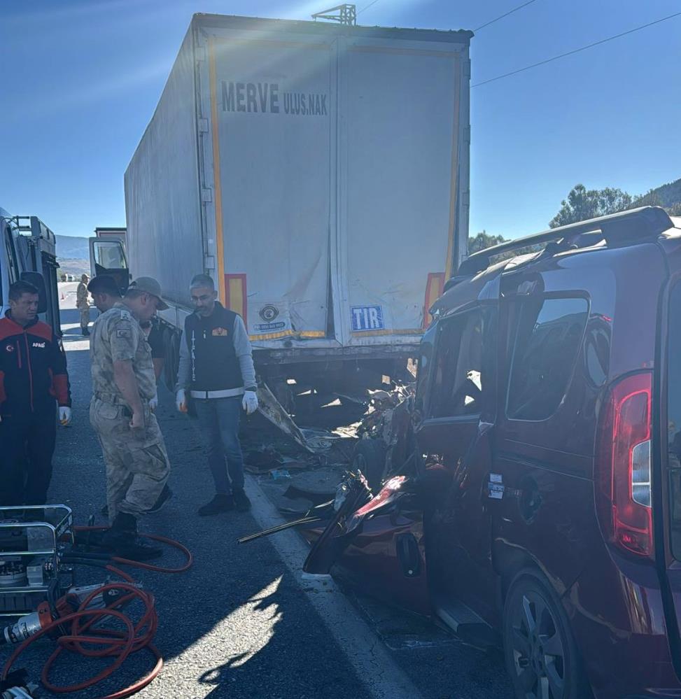 Erzincan'da Fiat Doblo marka otomobilin yol kenarında duran tıra arkadan çarpması sonucu meydana gelen trafik kazasında 3 kişi hayatını kaybetti, 2 kişi ağır yaralandı.