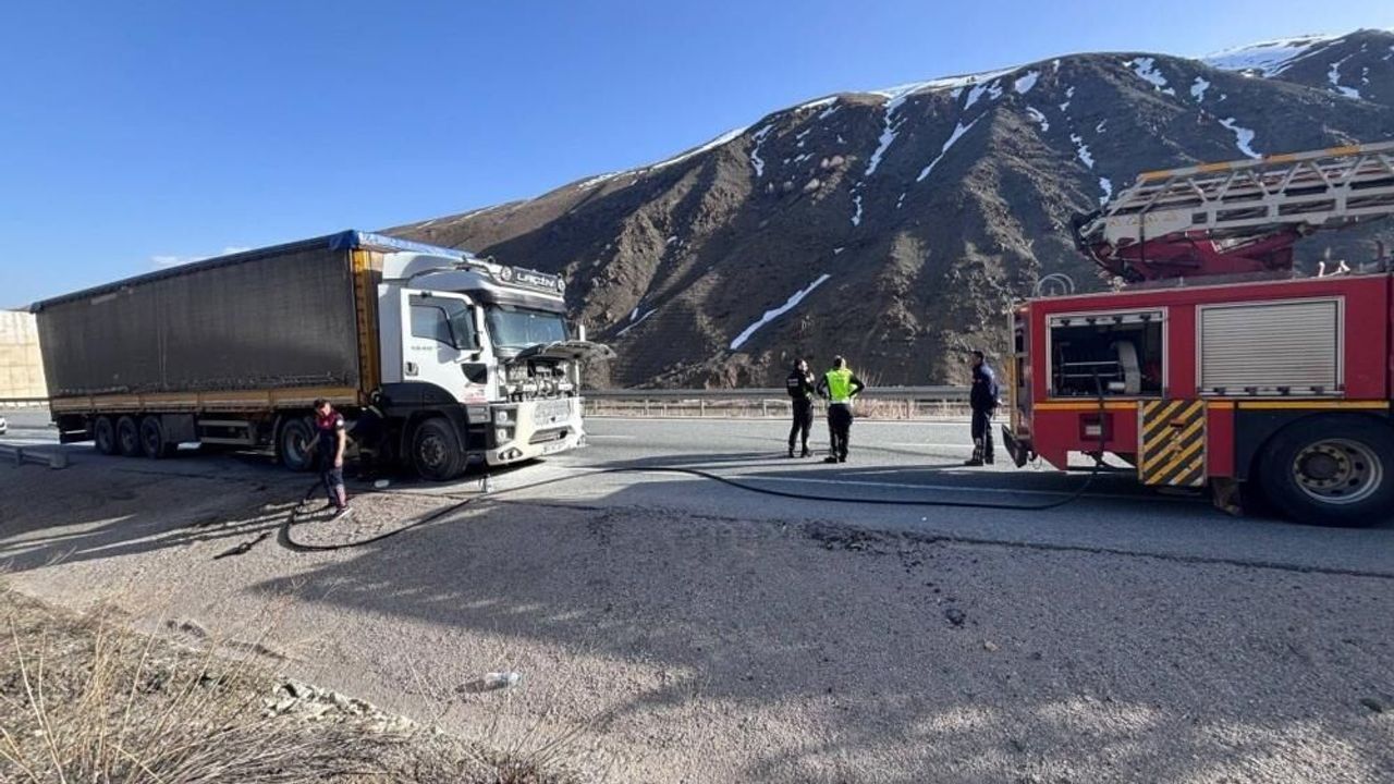 Sivas-Erzincan karayolunun Koçyatağı mevkiinde seyir halindeki bir tırda çıkan yangın, kısa sürede paniğe neden oldu.