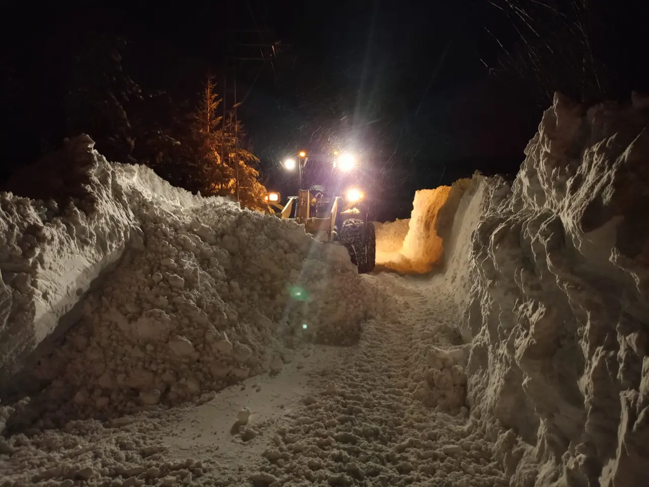 Yoğun kar ve tipiye rağmen köy yolları açıldı
