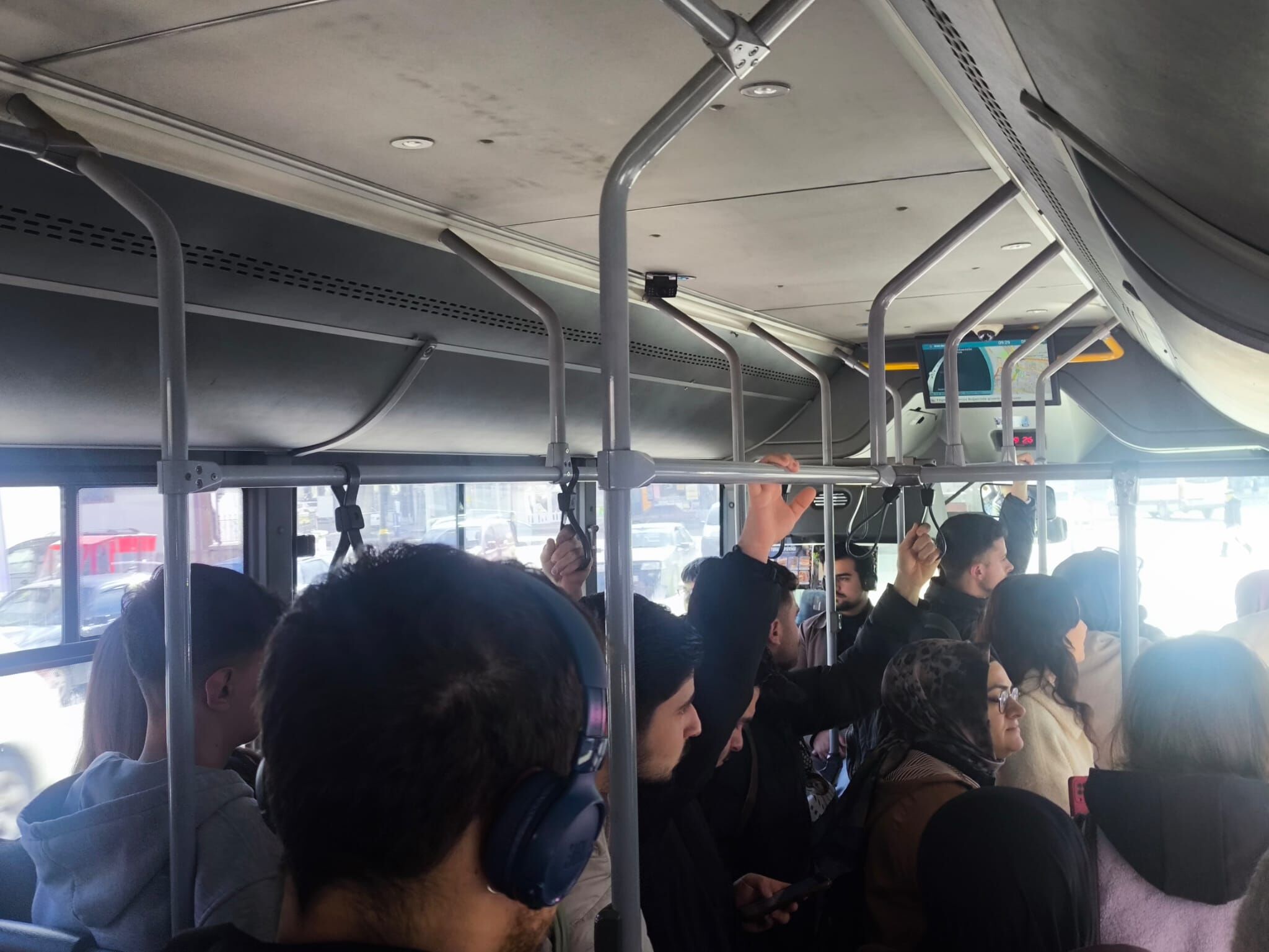 Ekonomik şikayetlerin ötesinde, halk otobüslerinin içindeki fiziksel koşullar da tehlike saçmaya devam ediyor. Sabah mesai başlangıcında ve akşam dönüş saatlerinde otobüsler, kapasitenin çok üzerinde yolcu alıyor. Araç içinde adım atacak yer kalmazken, ayakta seyahat eden yolcuların can güvenliği ise adeta pamuk ipliğine bağlı durumda.