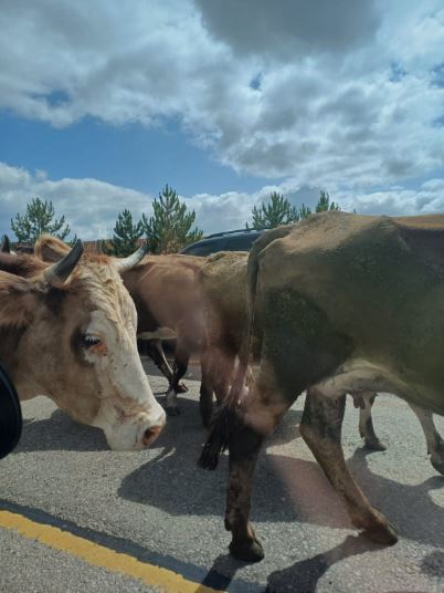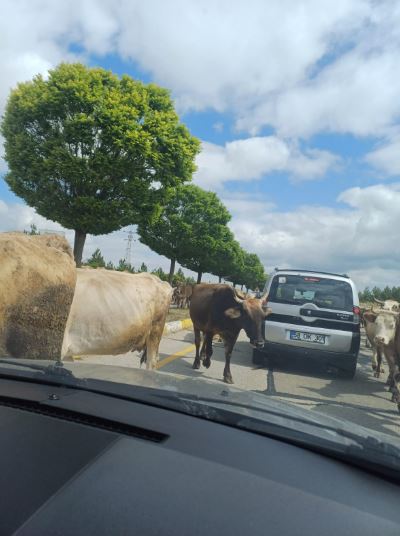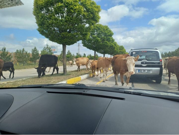 Sivas Nuri Demirağ Havalimanı'na sadece birkaç yüz metre kala, onlarca araçlık konvoy aniden durmak zorunda kaldı. Yolcular, uçağın kalkış saati yaklaşırken yaşadıkları paniğe anlam vermeye çalışırken, yolun ortasındaki manzarayla karşılaştılar. Ağır adımlarla ve son derece sakin bir şekilde yolu karşıdan karşıya geçen bir inek sürüsü... Yolcuların aceleci kornaları ve motor sesleri, günün tadını çıkarırcasına ilerleyen sürünün pek de umurunda olmadı.