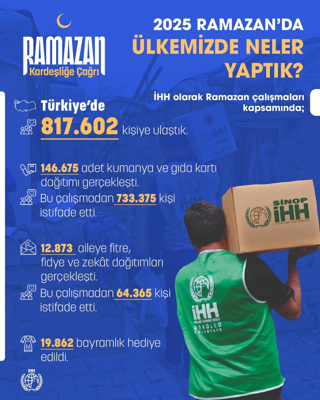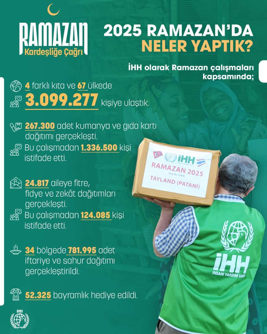 2025 yılı Ramazan ayında İHH, 4 kıtada toplam 67 ülkeye yardım ulaştırdı. Bu kapsamda 3 milyon 99 bin 277 kişiye destek sağlandığını belirten Zileli, yardımların geniş çapta gerçekleştirildiğini ifade etti.