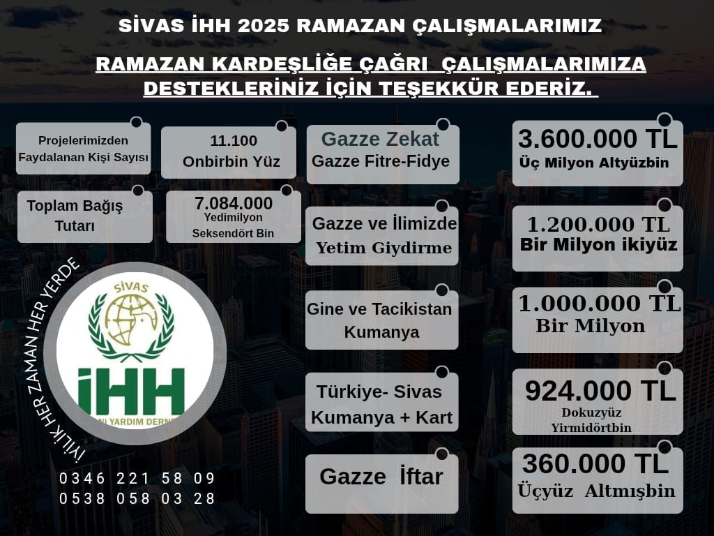 İnsan Hak ve Hürriyetleri (İHH) İnsani Yardım Vakfı Sivas Şube Başkanı Efe Zileli, Ramazan ayı boyunca gerçekleştirilen yardımlar hakkında önemli açıklamalarda bulundu.