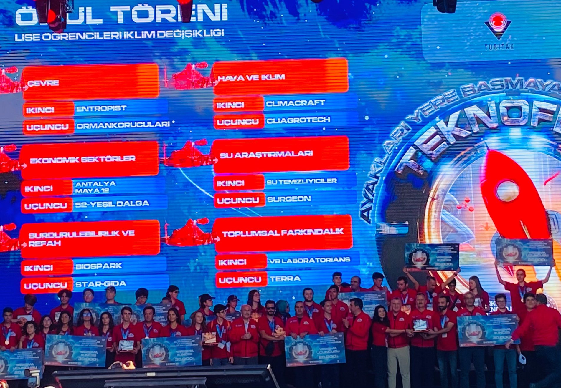Bilişim Teknolojileri Öğretmeni Doğan Erol danışmanlığında öğrencilerimiz; Kerem Mert Kor ve Halil Yiğit Şenol'den oluşan Orman Korucuları takımı İklim Değişikliği Araştırma Projeleri Yarışması çevre kategorisinde 3'üncü oldu.
