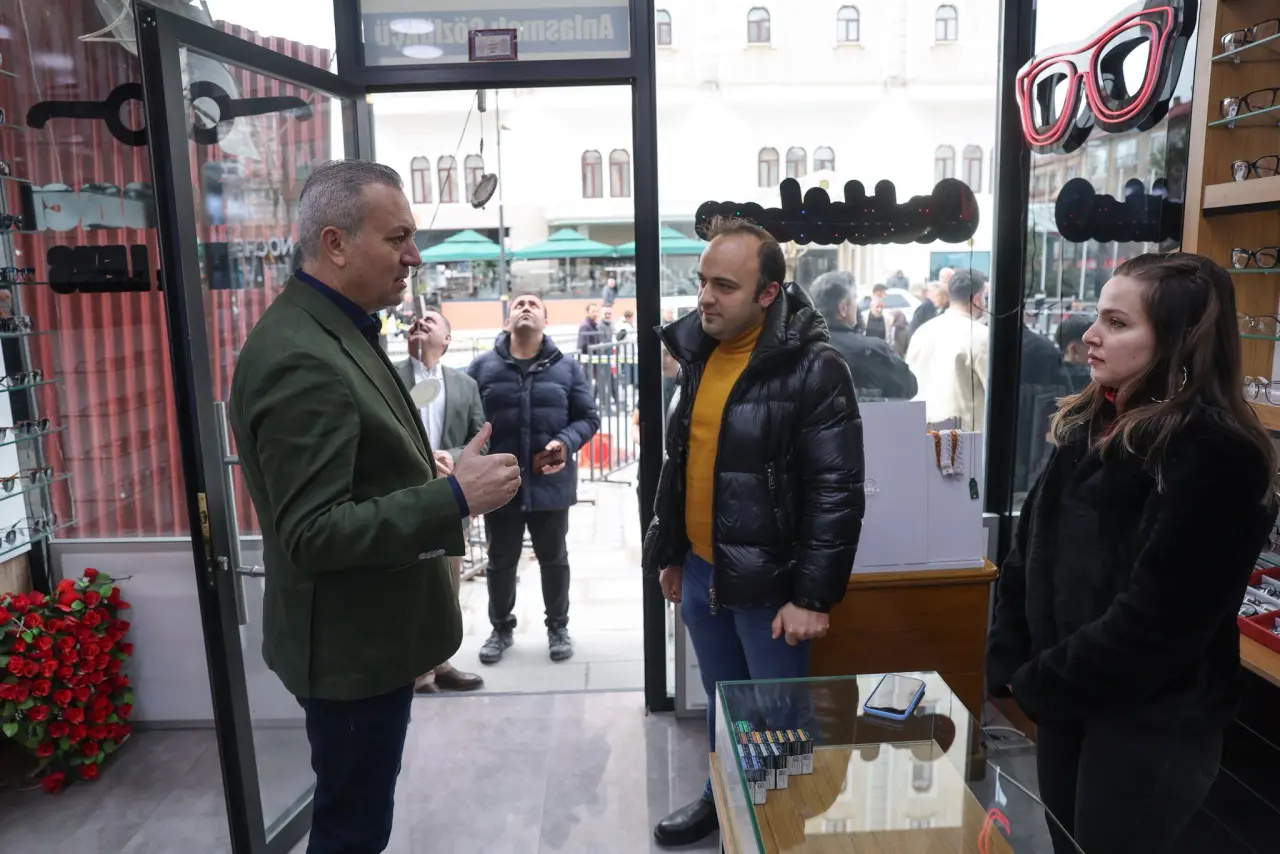 Bölge esnafıyla da bir araya gelen Adem Uzun, yaşanan aksaklık nedeniyle geçmiş olsun dileklerini iletti.