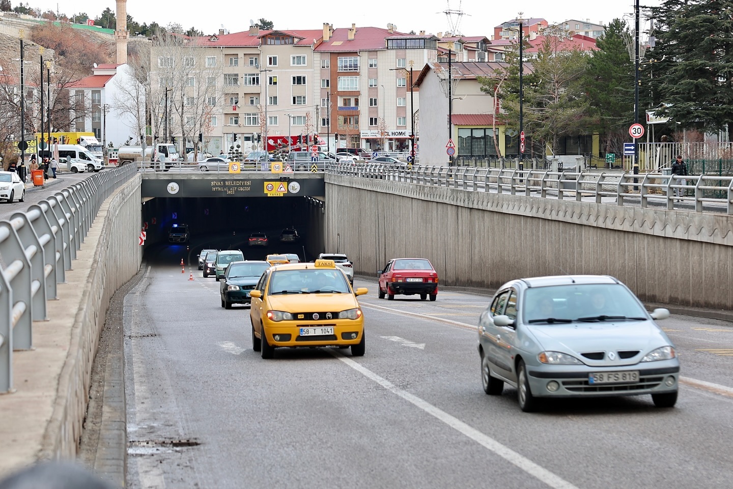 Sivas Belediye Başkanı Adem Uzun, trafikte hızlı seyreden araçların virajı alamayarak karıştığı maddi hasarlı kazaların ardından İstiklal Alt Geçidinde incelemelerde bulundu.
