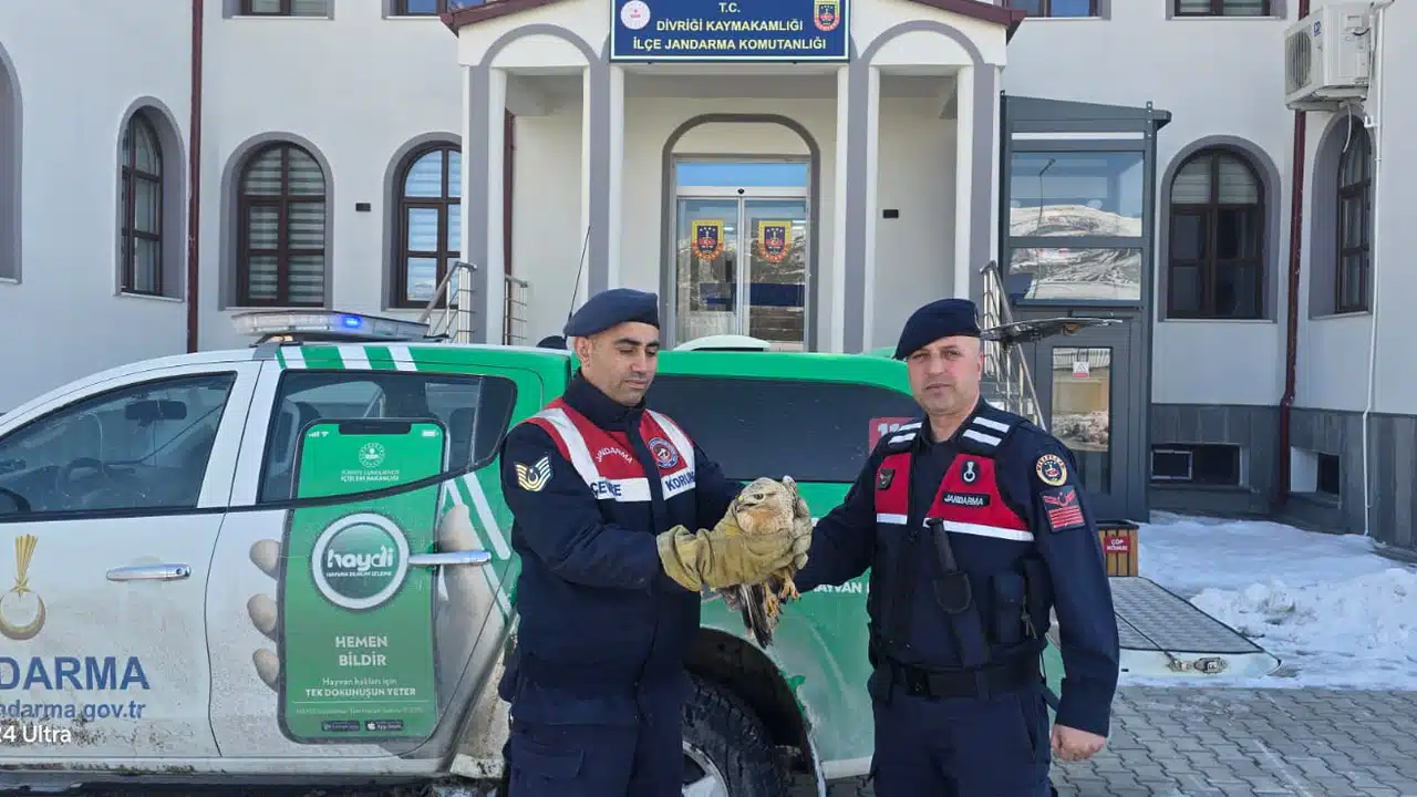 Sivas'ın Divriği ilçesinde, doğada yaralı halde bulunan bir Kızılşahin, İlçe Jandarma Komutanlığı ekipleri tarafından fark edilerek kurtarıldı. Ekipler, kuşu güvenli bir şekilde teslim alarak, doğaya yeniden kazandırılması için gerekli işlemleri başlattı.