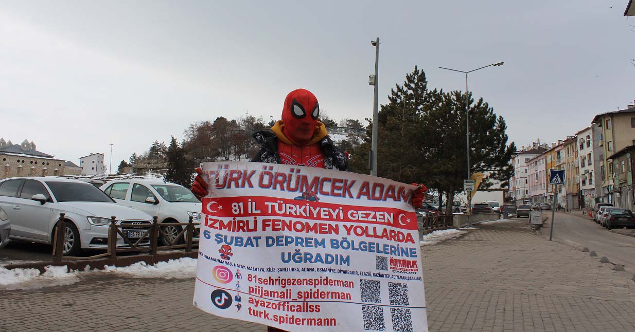 6 Şubat 2023'de yaşanan depremin ardından bölgeye giden ve gönüllü olarak depremzede çocuklara ücretsiz gösteriler düzenleyen Örümcek Adam lakaplı Ayaz Salih Koç, "Deprem zamanı Adana, Malatya, Gaziantep, Diyarbakır, Hayat şehirlerine gittim. Yakınlarını kaybeden çocuklara oyunlar oynattım, resimler yaptık. Bu süreçten sonra ise Türkiye yolculuğuna çıktım." dedi.