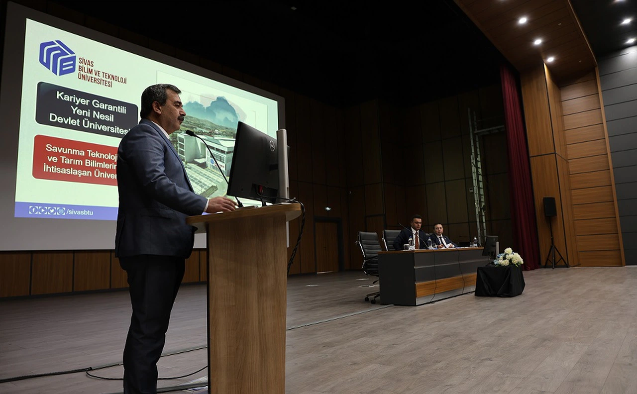 Sivas Bilim ve Teknoloji Üniversitesi Rektörü Prof. Dr. Mehmet Kul’un da Üniversitemizde yürütülen savunma sanayi ve tarimsal Ar-Ge projeleri ile ilgili bir sunum gerçekleştirdiği etkinlikte İl Genel Meclisi Başkanı Mehmet Şarkışla konuşmasında Sivas Bilim ve Teknoloji Üniversitesinde yürütülen çalışmaların sosyal ve toplumsal olarak öneminden bahsetti.