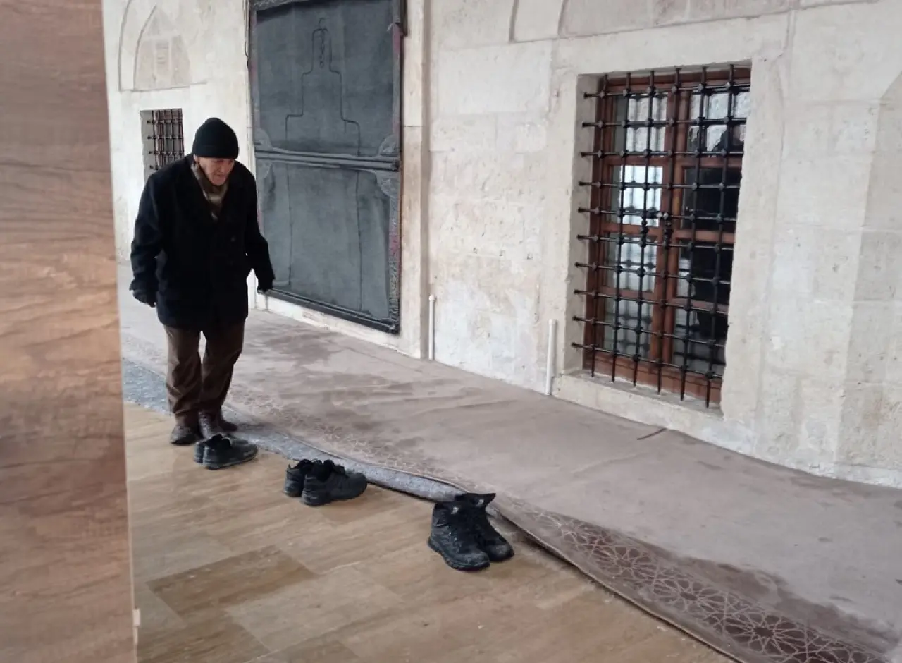 Ayakkabılıklara ulaşmak için açık alandan geçen cemaat, çoğu zaman karla kaplı zeminde yürüyerek cami girişine geliyor. Ayakkabılarını çıkaran vatandaşlar, karla kaplı buz gibi halı üzerine basarak cami içine giriyor. Bu durum cami içinde risk oluşturuyor, ısınan çoraplar ıslak hale gelirken giriş kısmındaki nemlilik bunu fazlasıyla gösteriyor.