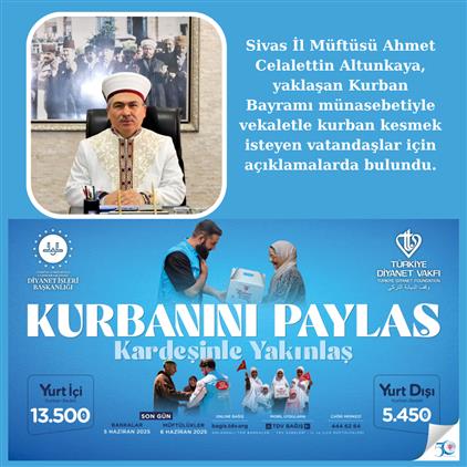 Sivas İl Müftüsü Ahmet Celalettin Altunkaya, yaklaşan Kurban Bayramı öncesi vekâlet yoluyla kurban kesimi hakkında vatandaşları bilgilendirdi. Altunkaya, kurban ibadetinin usulüne uygun yapılması gerektiğini vurguladı.