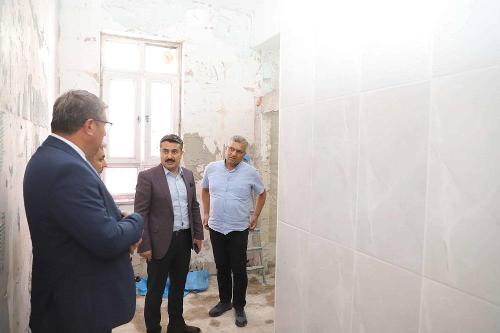 Millî Eğitim Müdürü Fatih Erdoğan, yaz dönemi bakım-onarım ve güçlendirme çalışmaları yapılan Kızılırmak İlkokulunu ziyaret ederek yapılan çalışmalar hakkında bilgiler aldı.
