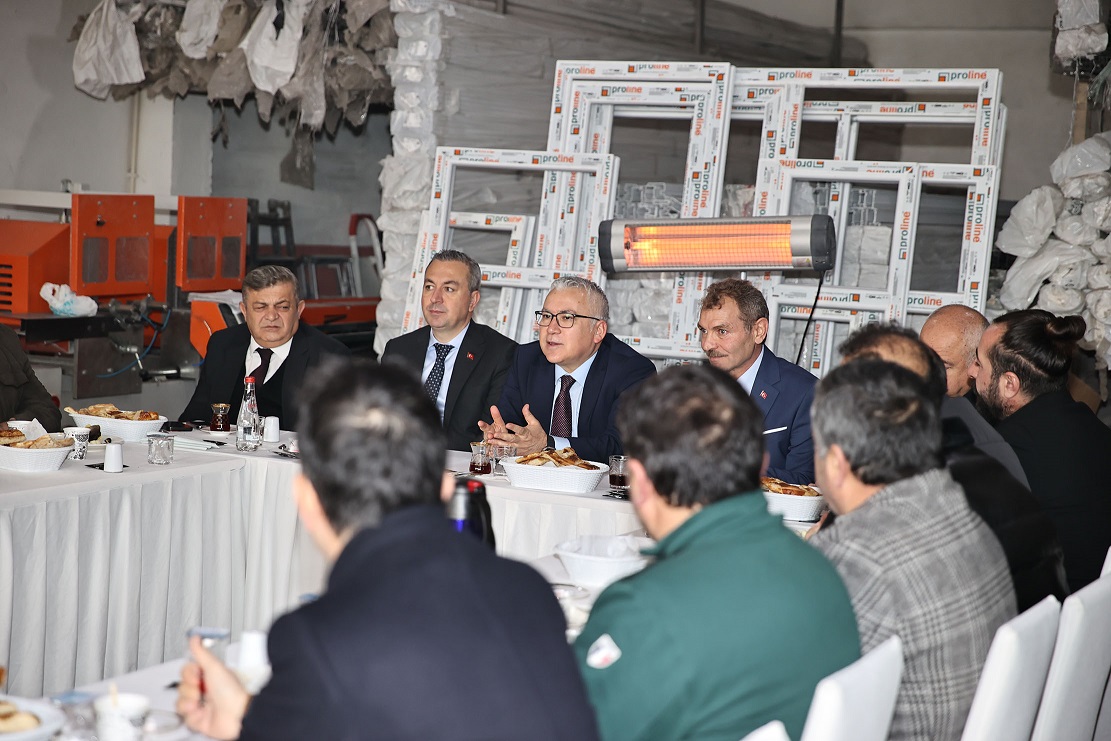 Vali Yılmaz Şimşek, Belediye Başkanı Adem Uzun, İl Emniyet Müdürü Burhan Akçay ve İl Jandarma Komutanı Kıdemli Albay Adem Taşkın; Sivas Demirciler Esnaf Odası'nın ev sahipliğinde düzenlenen programa katılarak esnaflarla bir araya geldi.
