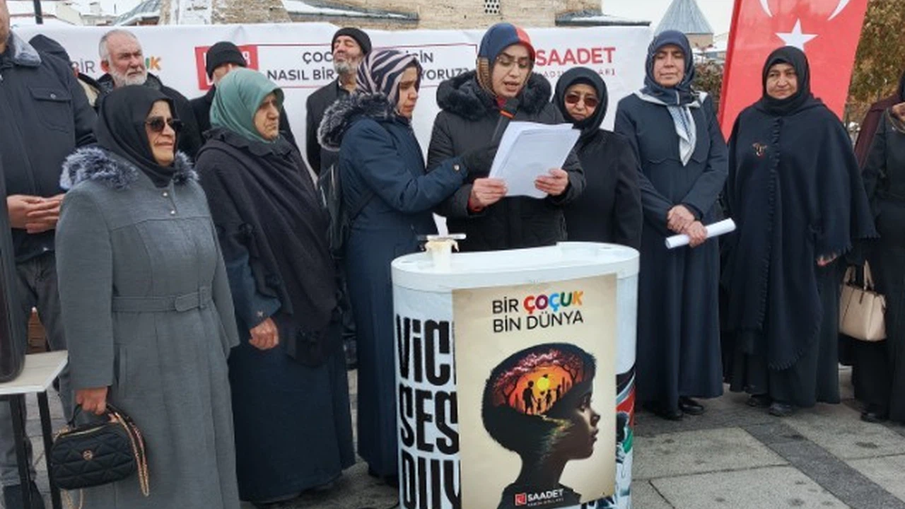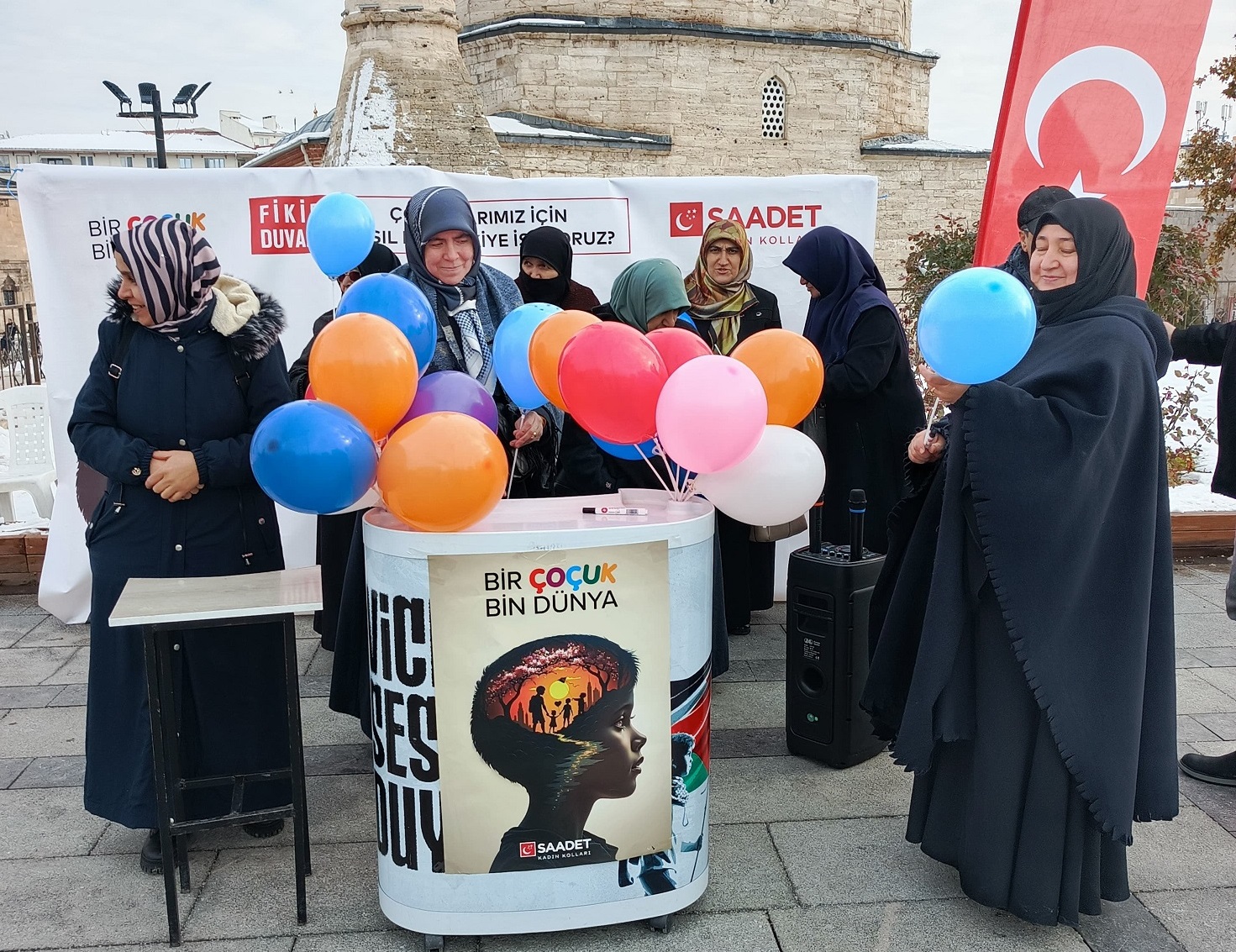 Sivas Kent Meydanı'nda gerçelşetirilen basın açıklamasında açılan stand önünde Sivaslılara çocuklar hakkında bilgiler içeren afişler yer aldı. Saadet Partisi Sivas Kadın Kolları Başkanı Mihriban Geldi tarafından yapılan açıklamada, TÜİK verilerine göre çocuk nüfusunun azalacağının öngörüldüğüne dikkat çekerek bu durumun endişe yarattığını, eğitime erişimde fırsat eşitliğinin yakalanmasının sevindirici olduğunu ifade ederek, "Bir taraftan anneleri iş gücüne katmayı planlayan hükümet bir taraftan çocuk bakımı ile ilgili çözüm sunmakta yetersiz kalmaktadır. Bu yetersizliğin yükünü annenin üzerine yıkmaktadır. Tabi biz birileri gibi anneleri varil başı 1,27 dolar olarak görmüyoruz" dedi.