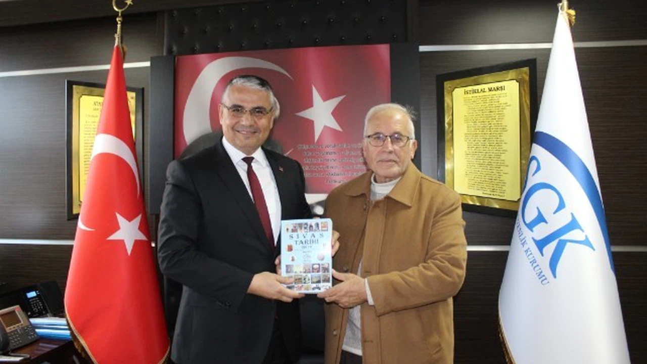 Bizim Sivas İmtiyaz Sahibi Muhsin Kaya, ziyaret anısına SGK Müdürü Ahmet Kale'ye kitap takdim etti.