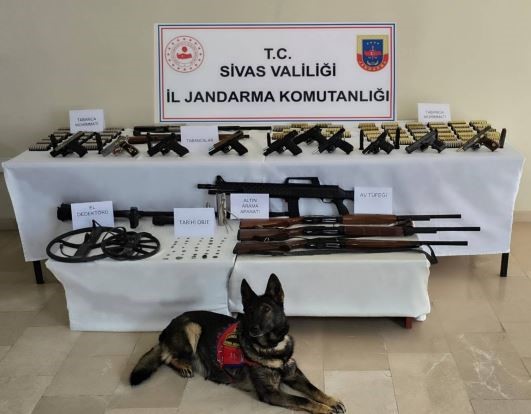 Gürün ilçesinde 4 ayrı adreste yapılan çalışmalarda ise; 3 detektör, 80 adet tarihi eser niteliği taşıyan sikke, 1 ruhsatsız av tüfeği, 1 kurusıkı tabanca ve 68 av tüfeği fişeği ele geçirildi. Olaya karışan 3 şüpheli şahıs gözaltına alındı.
