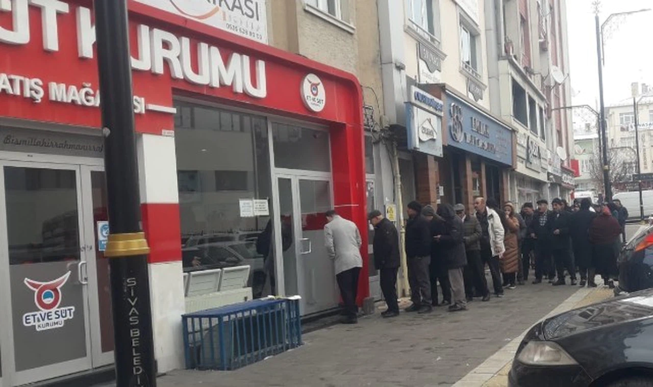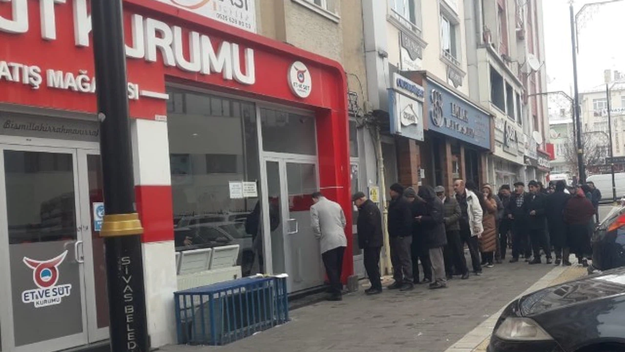 Sivas Et ve Süt Kurumu"nun, uygun fiyatlarla et satışı yapması nedeniyle vatandaşlar erken saatlerinden itibaren satış bayisine akın etti. Dondurucu soğuğa rağmen vatandaşlar sıralarda uzun süre beklemek zorunda kaldı. Ancak, et fiyatlarının piyasanın çok altında olması, vatandaşların bu zorlu koşullara rağmen sıralara girerek fırsattan yararlanma isteğini artırıyor. Özellikle ekonomik sıkıntılarla boğuşan dar gelirli ailelerin ilgi göstermesi dikkat çekiyor.