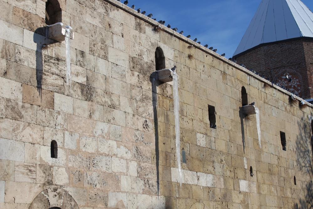 Tarihi Behrampaşa Hanı"nda 3 metreyi bulan dev buz sarkıtları görenleri hayrete düşürdü. Tarihi kent meydanında bulunan Şifaiye Medresesi'nde de buz sarkıtlarının oluştuğu görüldü.