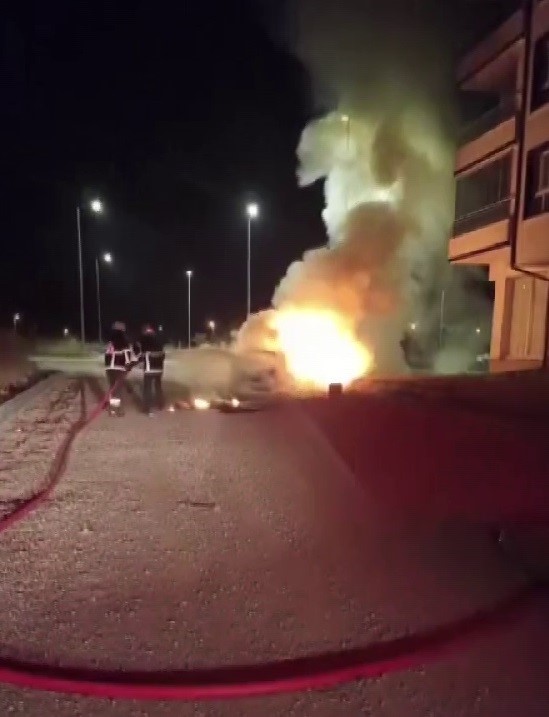 Yangın kısa sürede büyüyerek tüm aracı sardı. Durumun bildirilmesi üzerine olay yerine itfaiye ekipleri sevk edildi.
