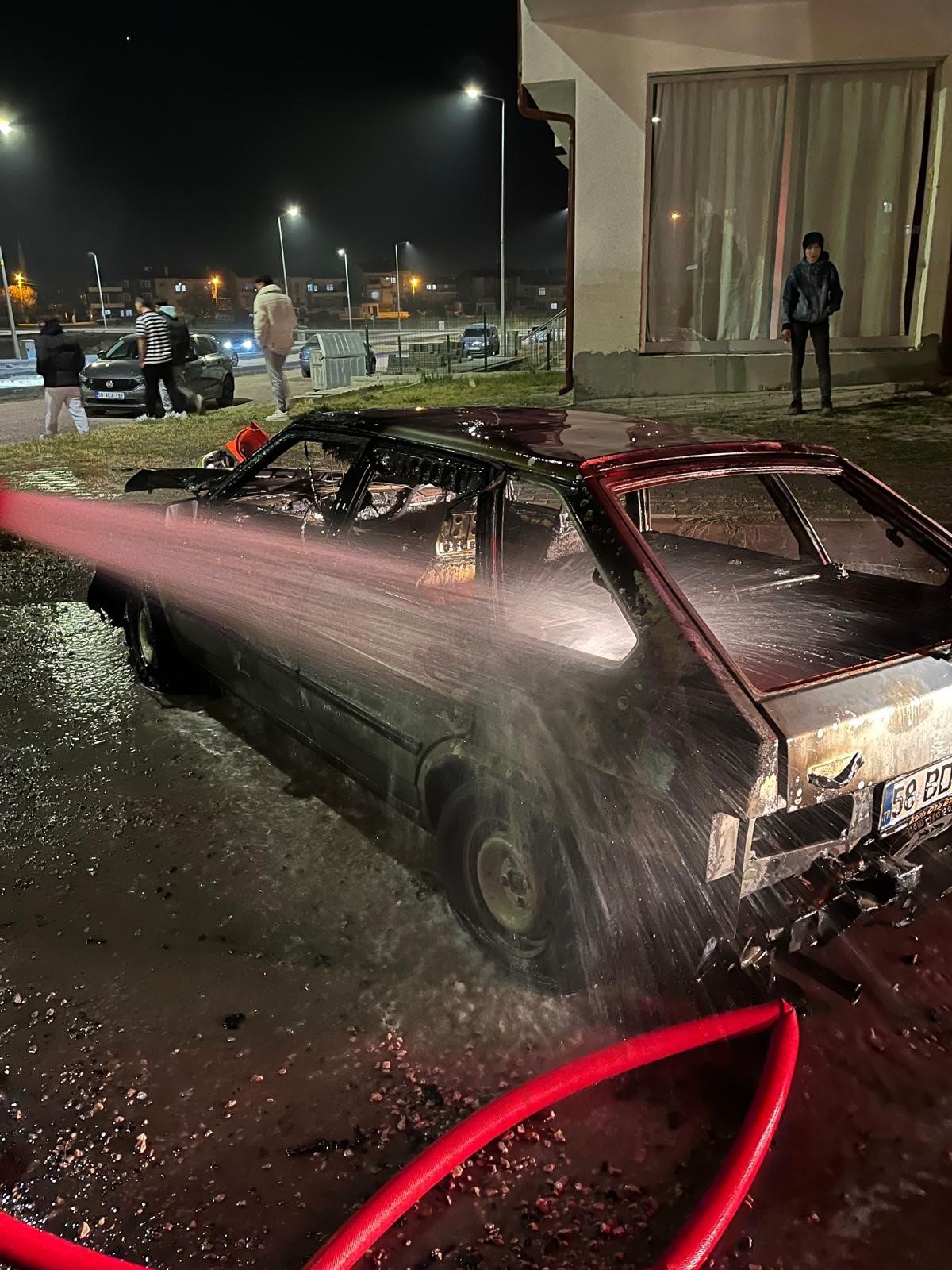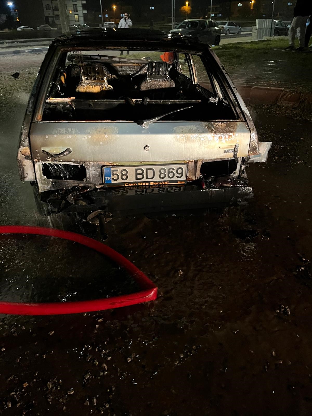 Sivas"ta alev alan otomobil yanarak kullanılamaz hale geldi.