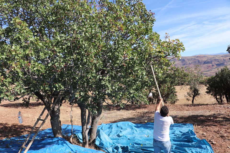 Sivas Günlüce ve Yaylacık köylerinde "Antep Fıstığı Aşılama ve Kapama Bahçe Yapma Projesi" kapsamında Menengiç ağaçlarının aşılanması yöntemiyle Antep Fıstığı hasadı gerçekleştirildi.