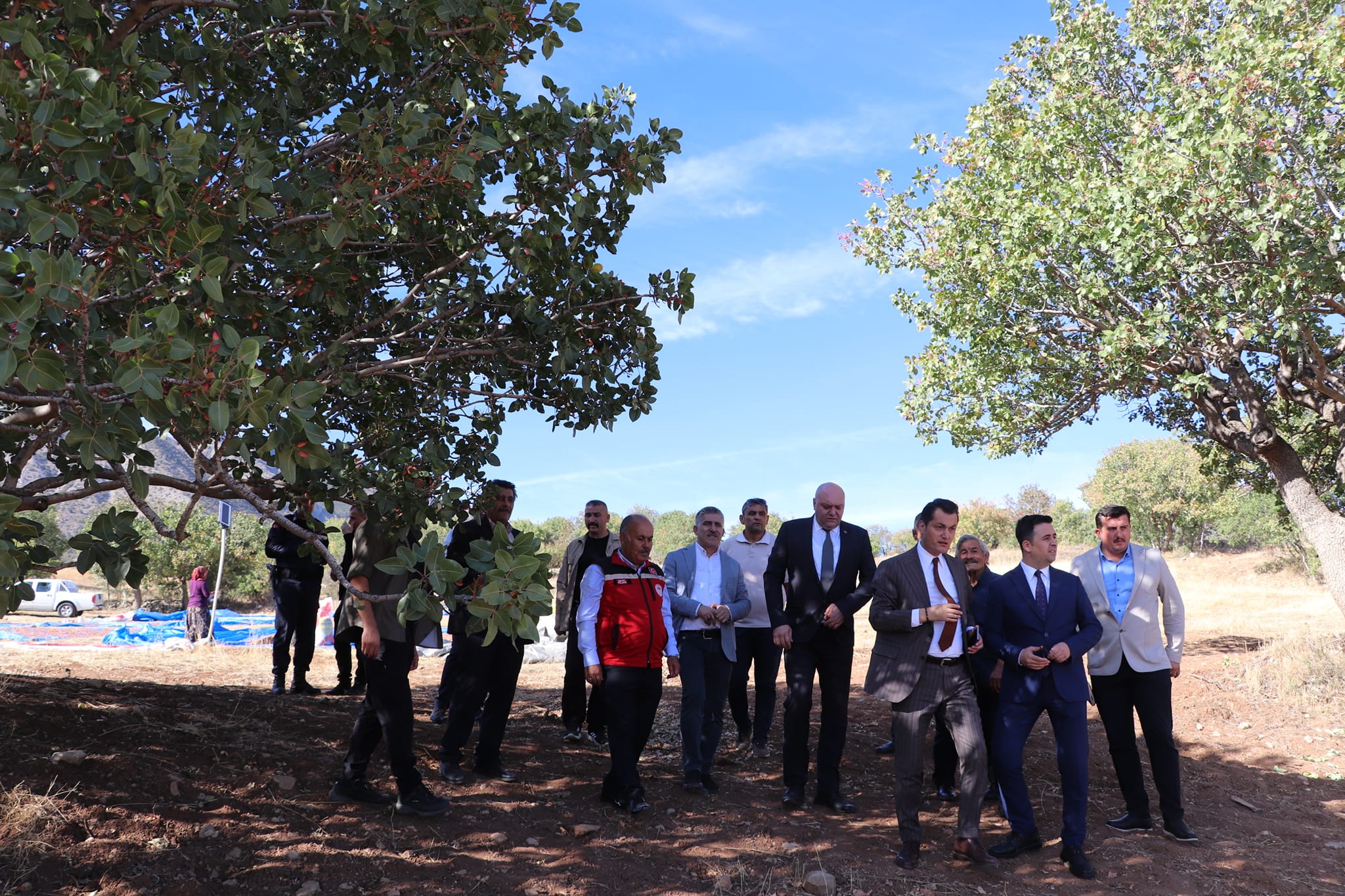 Günlüce ve Yaylacık köylerinde "Antep Fıstığı Aşılama ve Kapama Bahçe Yapma Projesi" kapsamında Menengiç ağaçlarının aşılanması yöntemiyle Antep Fıstığı üretimi yapılan alanda incelemelerde bulunarak hasat sezonun bol ve bereketli olmasını dilediler.