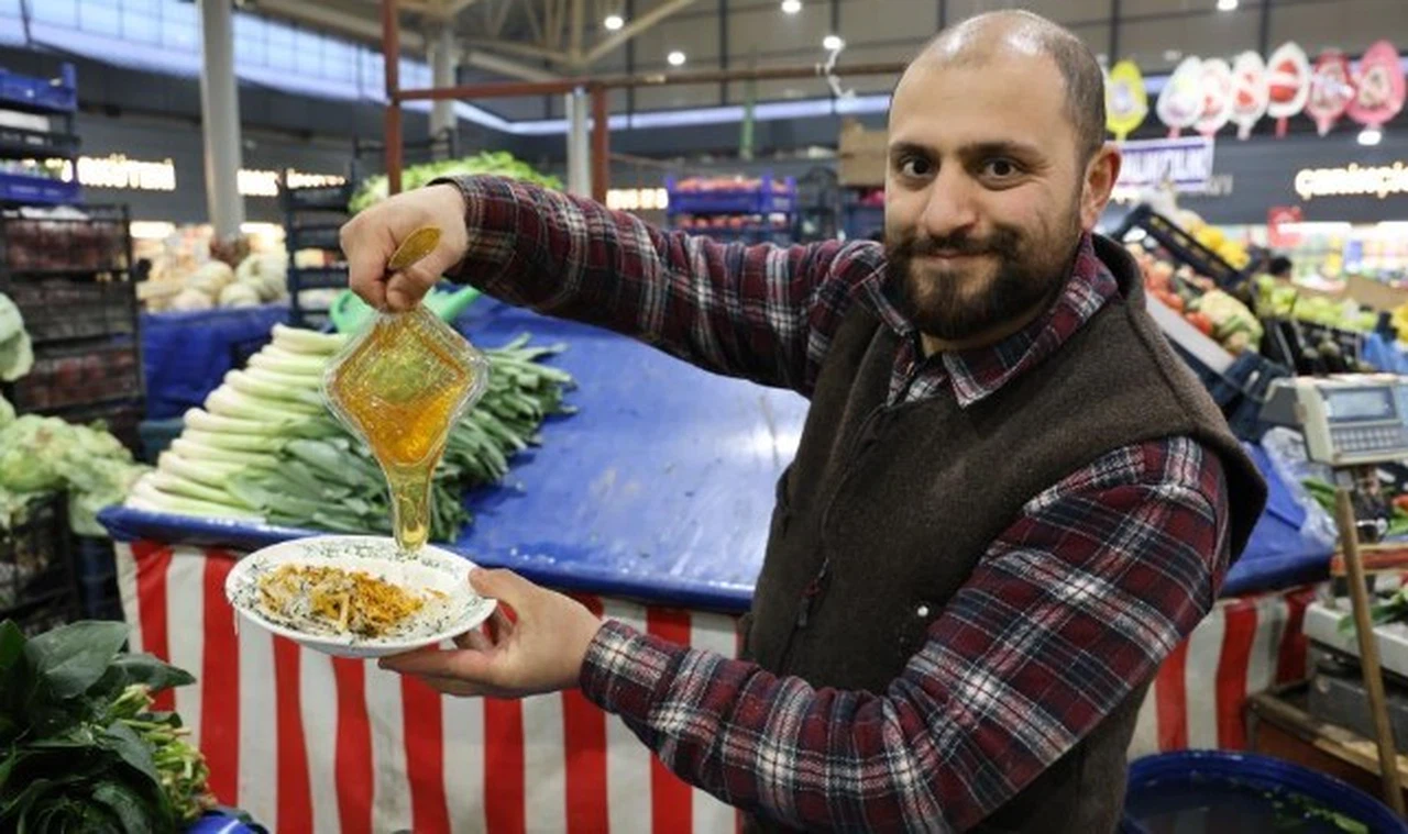 Sivas'ta perakende sebze halinde esnaflık yapan Ferhat Çobanoğlu, soğuk algınlığı ve öksürük için karaturpun içi oyularak konulan bal ile elde edilen sıvının en etkili antibiyotik olduğunu söyledi.