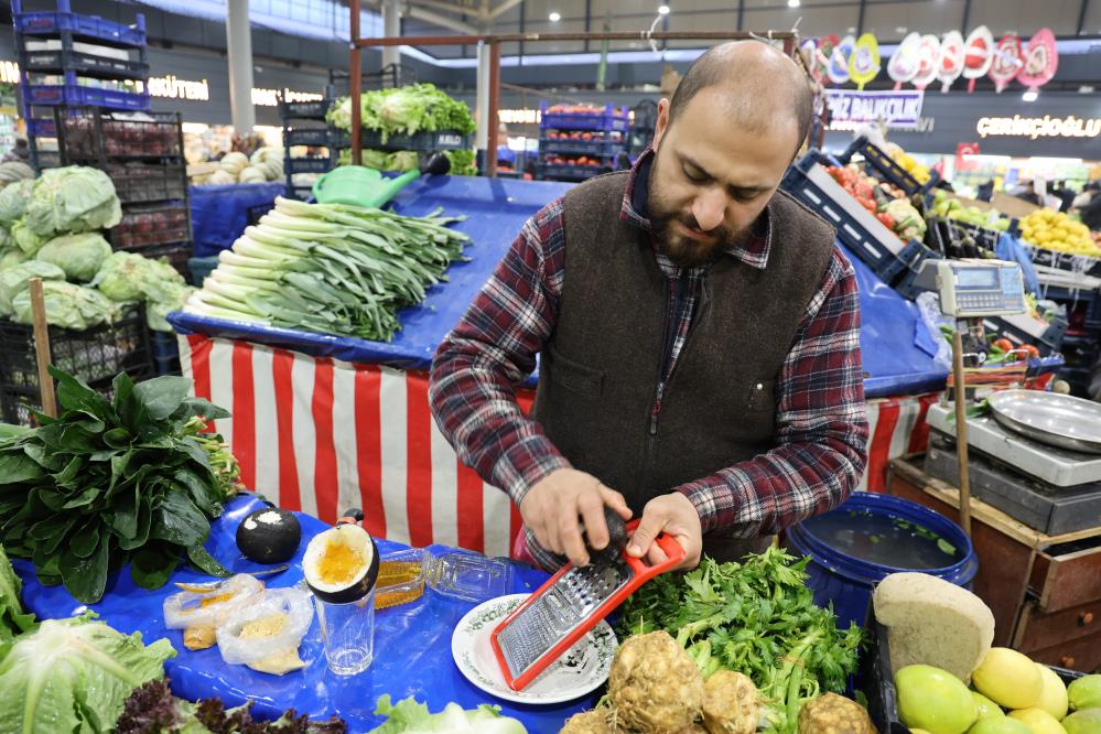 Çarşıbaşı Mahallesi'nde perakende sebze halinde esnaflık yapan Ferhat Çobanoğlu, öksürüğe iyi gelen bu formülü yıllar önce babaannesinden öğrendiğini belirterek, karışımın soğuk algınlığı, öksürük ve boğaz ağrısına iyi geldiğini söyledi. Karışımın hazırlanışını tarif eden Çobanoğlu, “Bizim her sene ilaç olarak yaptığımız karaturpu bu sene yine yaptık. Siroz, KOAH gibi hastalıklara karaturp çok faydalı gelir. Bu karışımı düzenli kullanmak gerekiyor.