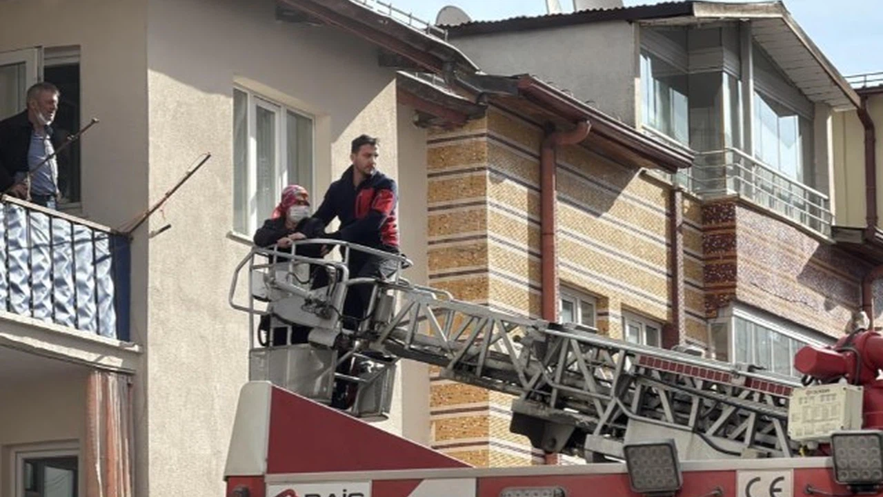 Yükselen dumanlar binayı sardı. Olay yerine sevk edilen itfaiye ekipleri, dumandan etkilenen apartman sakinlerini merdiven aracılığıyla tahliye etti.