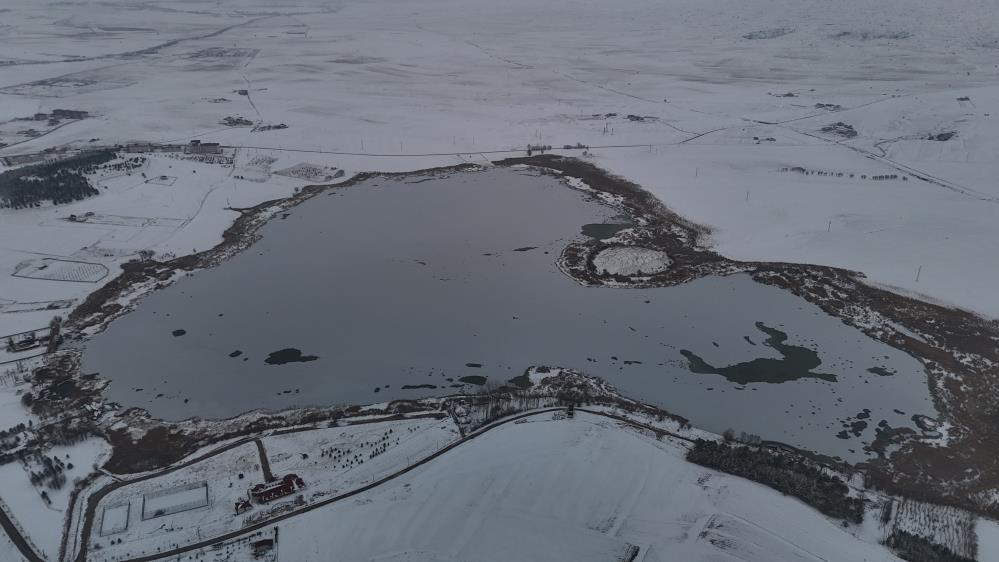 Sivas'ta geçtiğimiz günlerde etkili olan yoğun kar yağışı yerini dondurucu soğuğa bıraktı. Termometrelerin sabah saatlerinde eksi 10 dereceyi gösterdiği kentte, Hafik ilçesinde bulunan Hafik Gölü'nün yüzeyi kısmen buz tuttu. Cumhurbaşkanlığı tarafından 'Kesin korunacak hassas alan' olarak belirlenen Hafik Gölü'nde buz kalınlığı yer yer 3 santimetreyi buldu. Kış şartları nedeniyle doğada yiyecek bulmakta zorlanan bir tilki ise buz tutan gölün yüzeyinde görüntülendi. Öte yandan gölün buz tutmayan kısımlarında toplanan yüzlerce Sakarmeke kuşları görsel şölen oluşturdu. Buz tutan göl havadan dron ile görüntülendi.