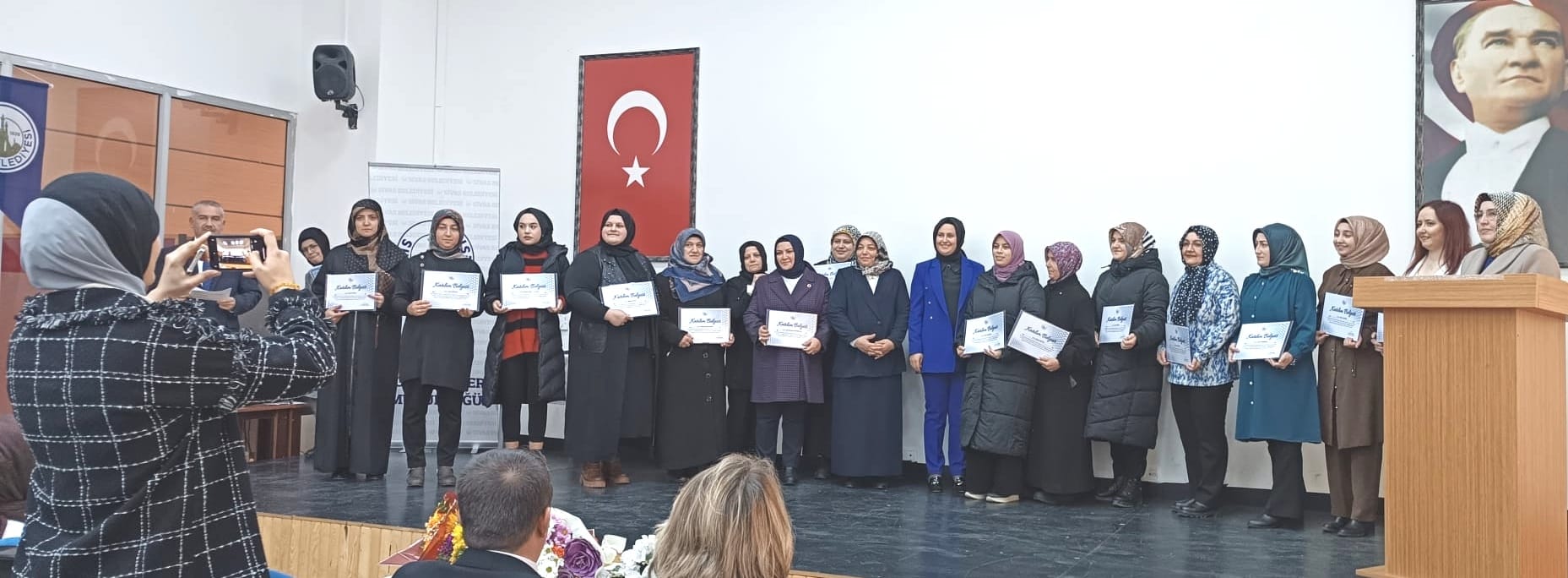Diksiyon kursunda bu dönem, toplam 72 kursiyer katılım belgesi aldı. Kursu başarıyla tamamlayan kursiyerler için Fidan Yazıcıoğlu Kültür Merkezinde, kurs katılım belgesi takdim töreni düzenlendi.